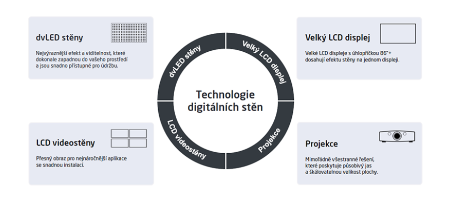 - Video stěny z LFD (Large Format Displays)