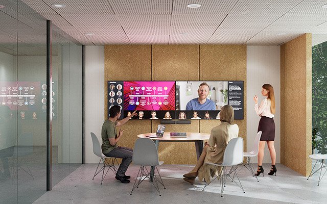 Je to dokonalé řešení výzev spojených s hybridní prací. Nejenže lepší zážitek ze zasedací místnosti pomáhá přilákat pracovníky zpět do kanceláře, ale také znamená, že vzdálení účastníci nejsou znevýhodněni.
