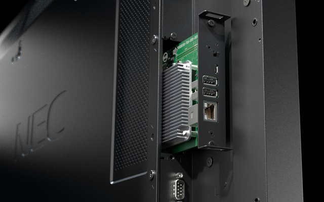 Nejnovější generace výpočetních modulů Raspberry Pi poskytují vysoký výkon a síťové funkce, takže jsou ideálním hostitelem pro přehrávač NEC MediaPlayer a pro bezproblémovou integraci do displejů NEC, přičemž si zachovávají nízkou cenu. Výpočetní modul Raspberry Pi, zabudovaný do velkoformátových displejů NEC řady ME, M, MA, C*,V a P a řady videostěn UN, poskytuje dlouhodobý výkon nezávislý na hostitelském displeji, což zajišťuje bezpečnost investic do budoucna. Nejnovější Compute Module 4 nabízí 4 GB RAM a vysokou úroveň výkonnostního náskoku. I v rámci výkonnostních špiček zůstává tento modulární SoC díky pasivnímu chlazení tichý.