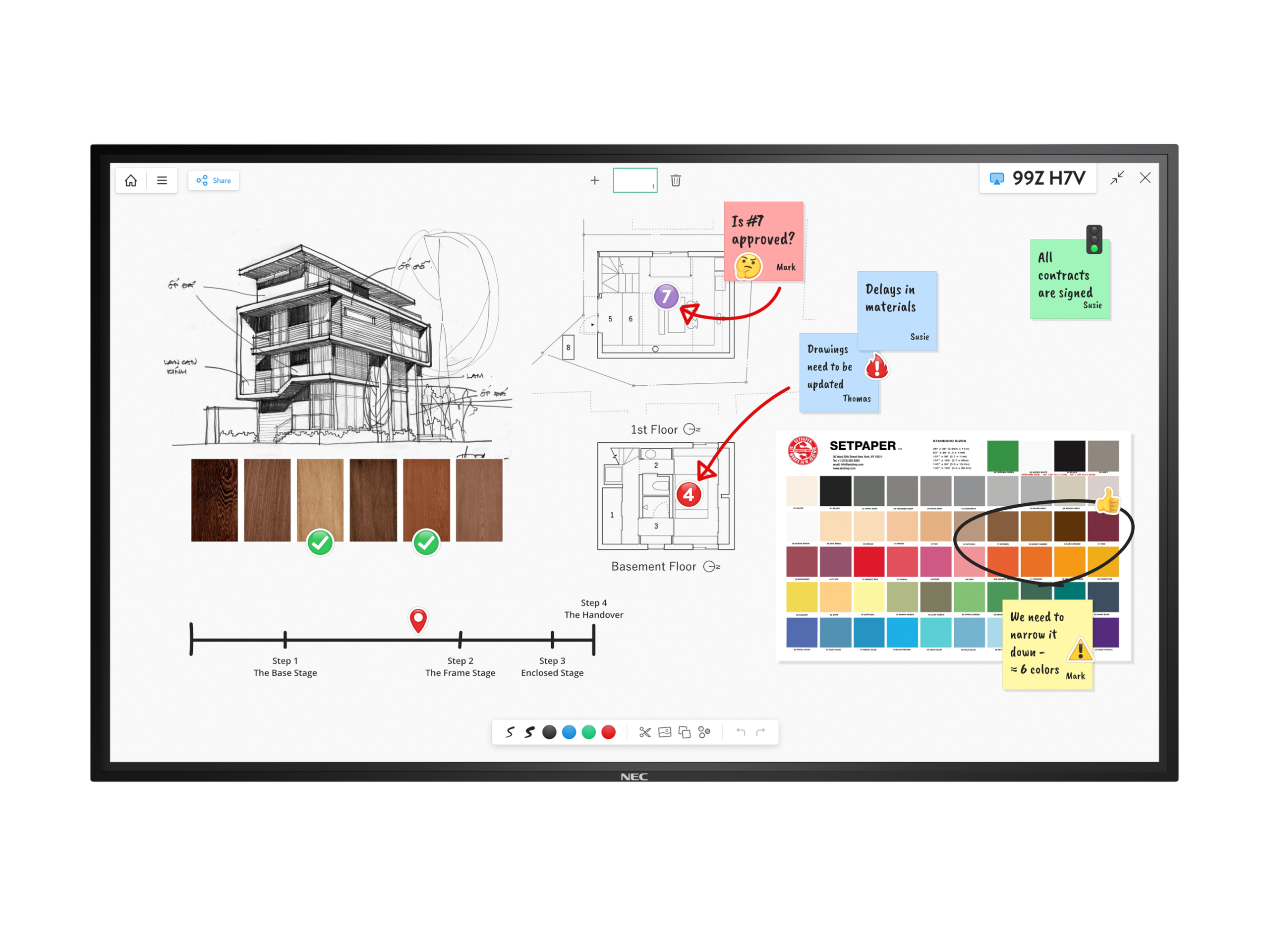 Moderní konferenční prostory zvyšují požadavek po pokrokových dotykových technologiích s inovativním designem. Na podporu interaktivních konferencí přináší dotyková tabule NEC InGlass™ společně s citlivým pasivním perem prvotřídní psaní s minimálním časovým zpožděním, které připomíná psaní na papír. Díky štíhlému designu rámu se tato technologie snadno integruje do moderních prostorů.