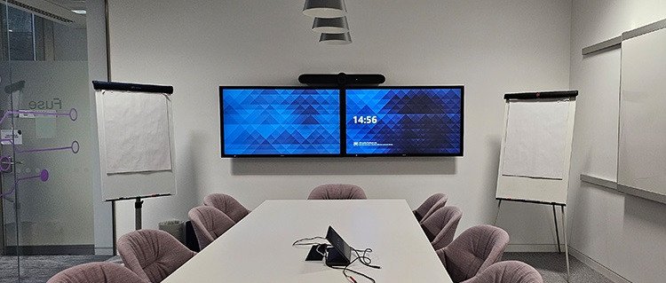 Dvakrát hezčí: dvě obrazovky, jedno pohledné řešení hybridní zasedací místnosti