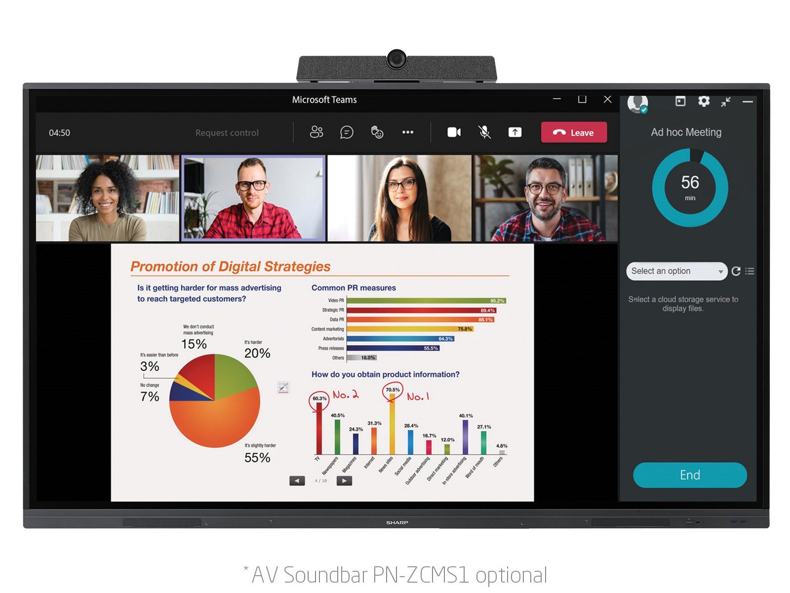 Pro bezproblémové zážitky z videokonferencí s okamžitým přístupem, ať už v místnosti nebo na dálku, Sharp/NEC inteligentní řešení „vše v jednom“ pro moderní konferenční prostory.