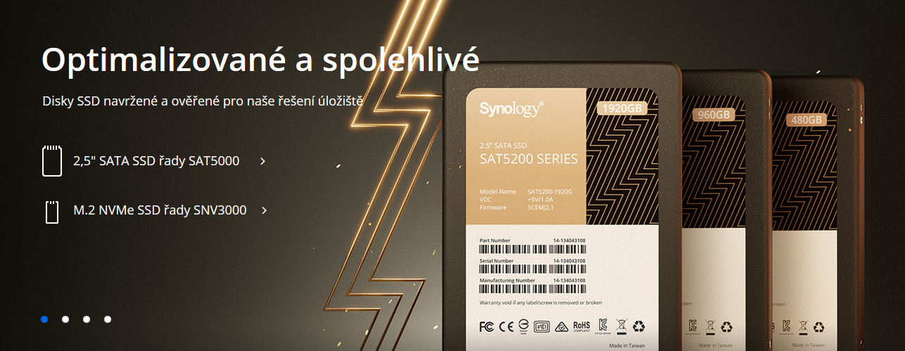 Společnost Synology představila řadu produktů SSD určených pro stále náročnější prostředí pracovních zátěží virtualizace, databázových úložišť s vysokými objemy provozu a projektů AI a HPC. Do řady Synology SSD patří rozměry disků 2.5” SATA, M.2 2280 a M.2 22110, nabízející konzistentní výkon s nízkou latencí vstupu/výstupu. Tato řada produktů doplňující stávající řešení Synology NAS prošla náročným testováním a umožňuje zákazníkům nasadit plně ověřené a spolehlivé řešení.