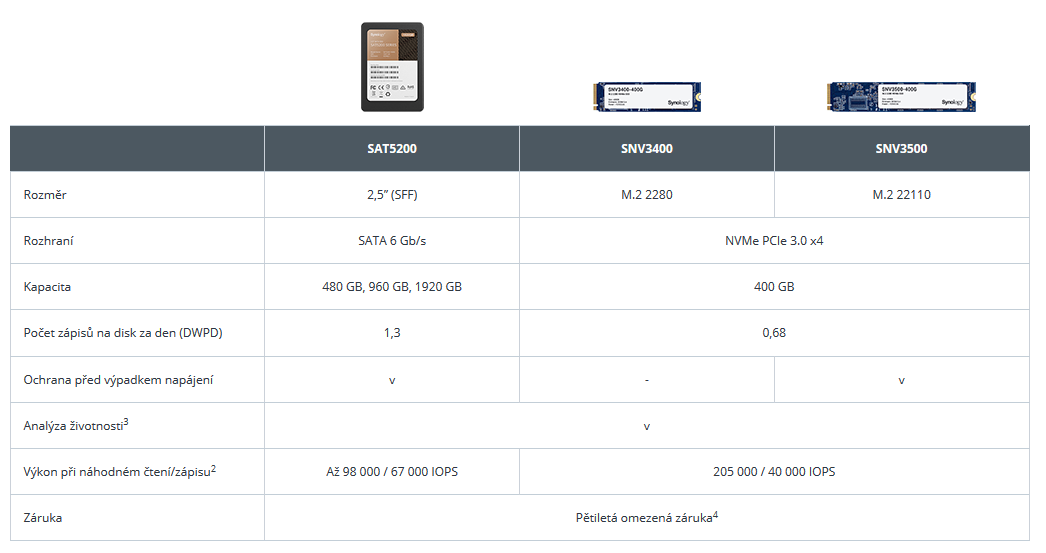 Disky SSD řady Synology SNV3400, SNV3500 NVMe