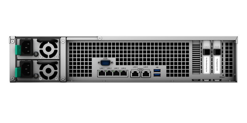 - Zařízení FS3600 lze pomocí 2 rozšiřovacích jednotek FX2421 (24x SFF) rozšířit až na 72 disků a pomocí 2 rozšiřovacích jednotek RX1217sas (12x LFF) až na 48 disků. Rozšiřovací jednotky Synology se prodávají samostatně.