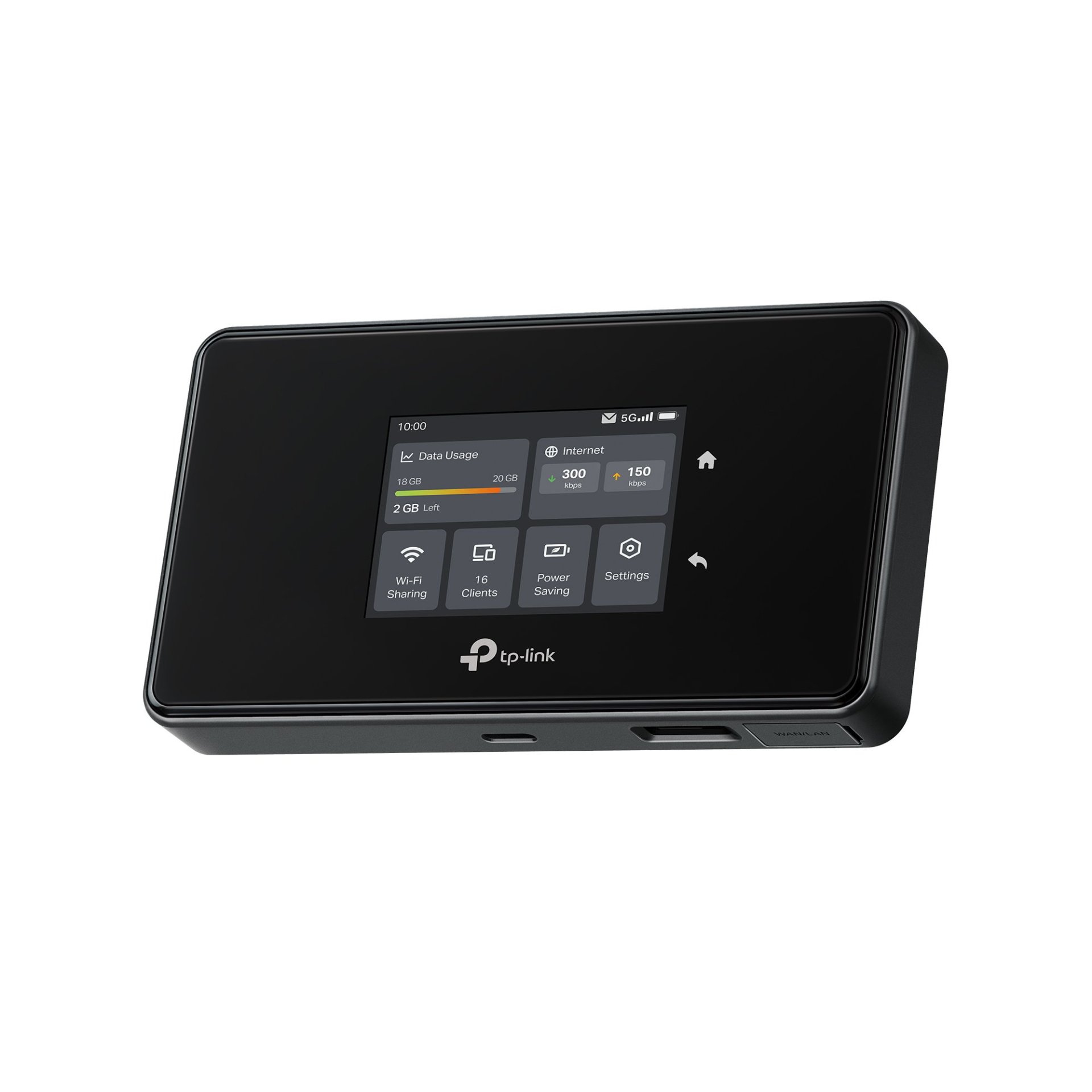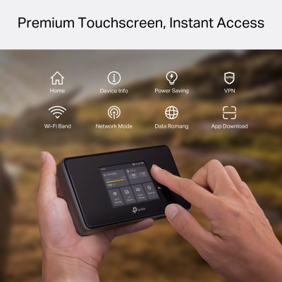Router je vybaven gigabitovým portem WAN/LAN pro stabilní kabelové připojení notebooku nebo dalších zařízení. Integrovaný dotykový displej 1,44" umožňuje snadnou správu, sledování spotřeby dat, stavu baterie, síly signálu a připojených uživatelů přímo na místě. Velkokapacitní baterie 4 680 mAh zajišťuje dlouhou výdrž na cestách, a to i při náročném provozu. Router lze použít také jako stacionární router připojený přes USB-C s možností odpojení baterie pro trvalý provoz.