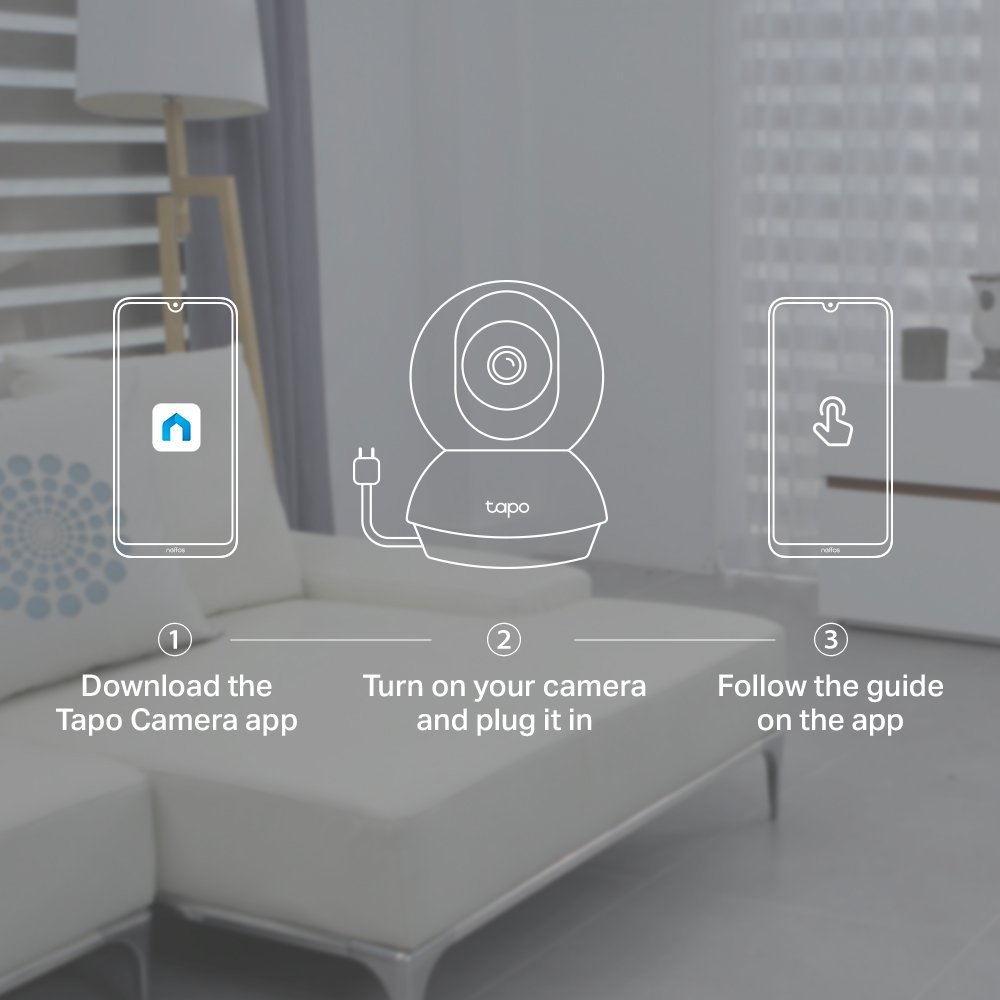 Aplikace Tapo, dostupná pro zařízení s operačním systémem iOS a Android, umožňuje plnou kontrolu nad kamerou odkudkoliv na světě. Prostřednictvím aplikace je možné sledovat živý přenos, přehrávat uložené záznamy, ovládat otáčení kamery nebo komunikovat s lidmi na druhé straně. Tapo C200C je kompatibilní s hlasovými asistenty, jako je Google Assistant a Amazon Alexa, což umožňuje ovládání kamery pomocí hlasových příkazů.