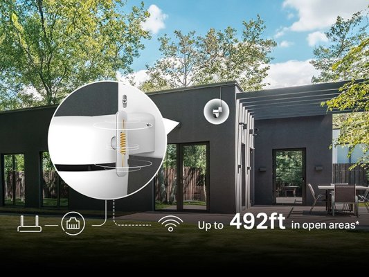 Tapo C530WS zvládne snímat obraz v rozsahu 360° horizontálně a 130° svisle. Tím se minimalizují slepá místa, přičemž dvě výkonné externí antény zajišťují bezdrátové pokrytí v dosahu až 150 metrů (v otevřeném prostoru). Kamera nabízí také možnost připojení přes ethernetový port.