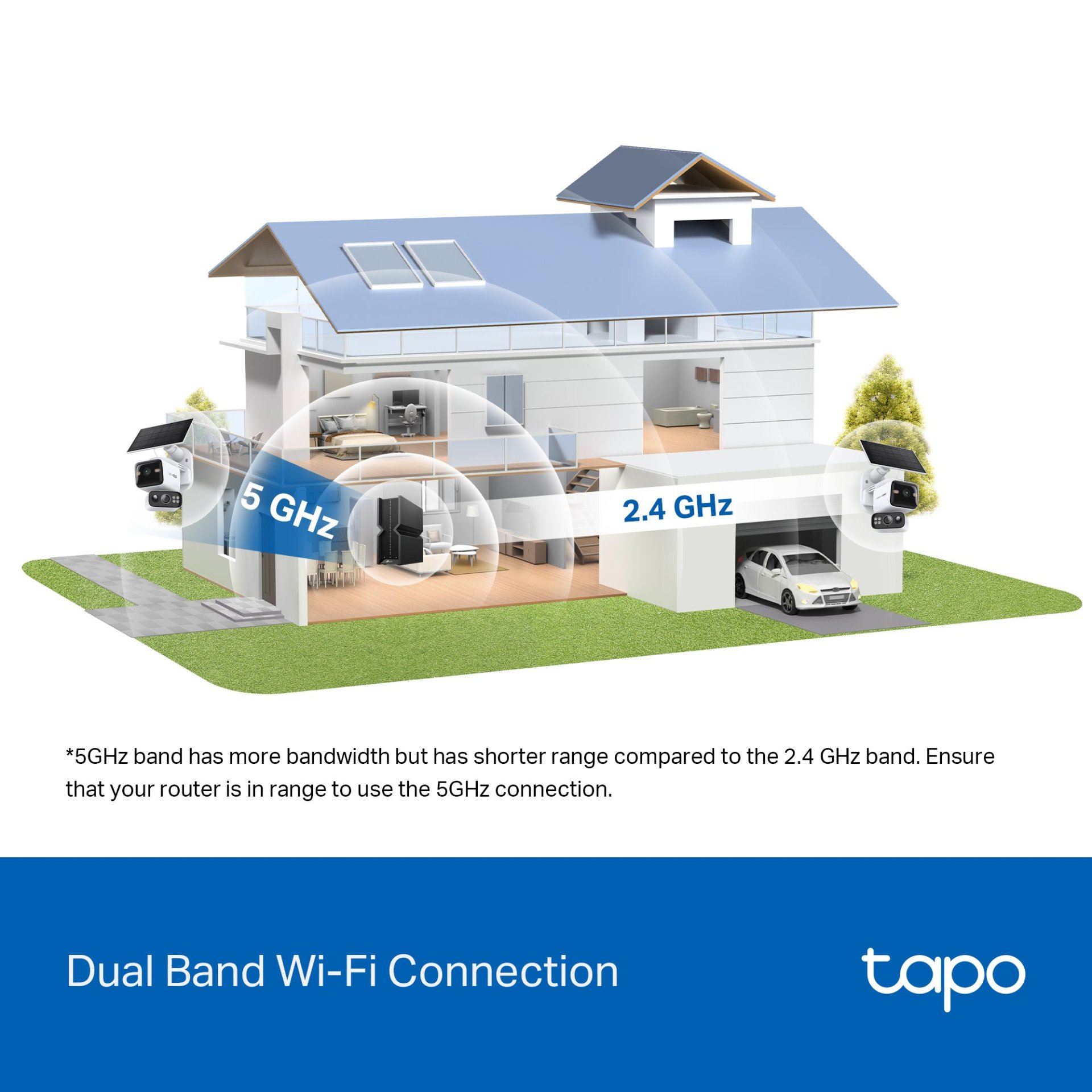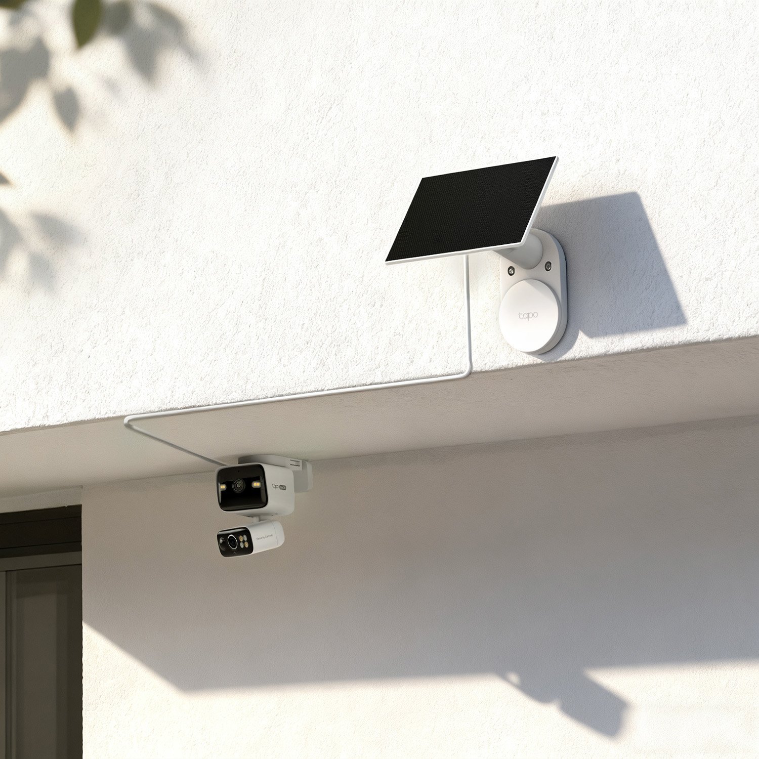 Součástí sady je solární panel Tapo A201, který ve spojení s integrovanou dobíjecí baterií o kapacitě 10 000 mAh zajišťuje dlouhodobý provoz bez potřeby kabelového připojení k elektrické síti. Přibližně 1 hodina přímého slunečního světla denně stačí k tomu, aby kamera fungovala celý den a baterie může při běžném provozu udržet kameru v chodu až 120 dní bez dobíjení. To umožňuje umístění kamery v místech, kde není k dispozici elektrická zásuvka a značně usnadňuje instalaci.