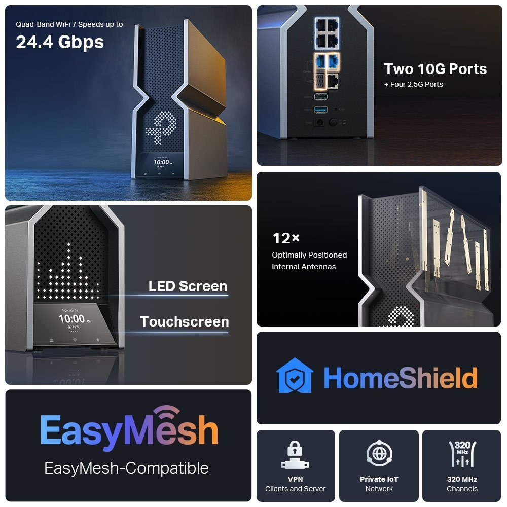 Společnost TP-Link, světový dodavatel síťových řešení a produktů chytré domácnosti, představuje nový čtyřpásmový Wi-Fi 7 router Archer BE900, který nastavuje nové standardy v oblasti domácích sítí. Novinka přichází s technologií Wi-Fi 7, bleskově rychlým kabelovým připojením, atraktivním designem a snadno použitelnou dotykovou obrazovkou a LED displejem.