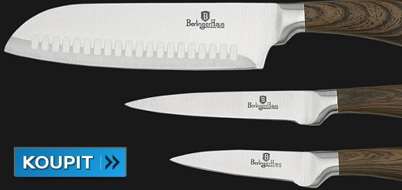 V nabídce jsem našel sadu nožů BerlingerHaus, tak je asi brzy prubnu. Na pohled vypadají parádně, je to rovnou sada pěti nožů, nůžek a ocílky a vše je v pěkném stojanu. Když k tomu manželce přikoupím sekáč na dlaždice, vytahovač hřebíků a bourací kladivo, mohli by nám nože zase nějaký čas vydržet…