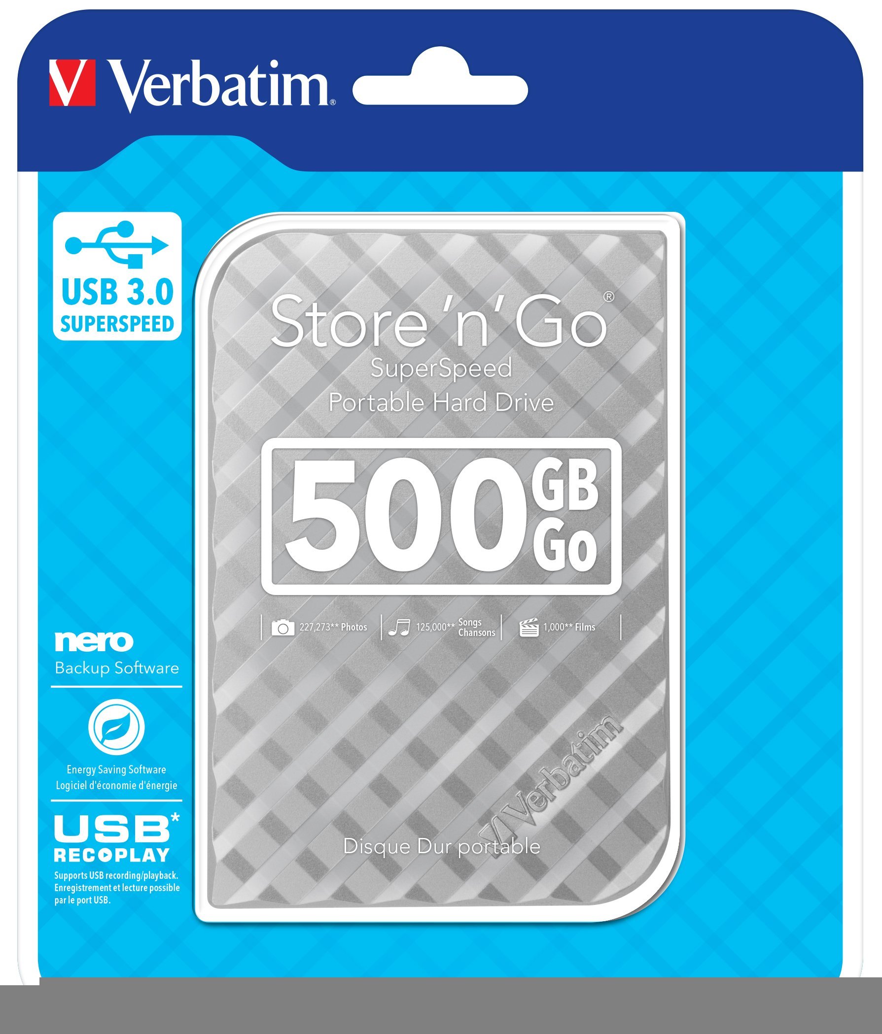 Přenosný pevný disk Verbatim Store'n'Go Gen2 nabízí velkokapacitní úložiště s rozhraním USB 3.0 Super Speed. Rozhraní USB 3.0 nabízí až desetkrát rychlejší přenos dat než USB 2.0 (podle rychlosti sběrnice USB), takže umožňuje extrémně rychlý přenos dat na cestách.