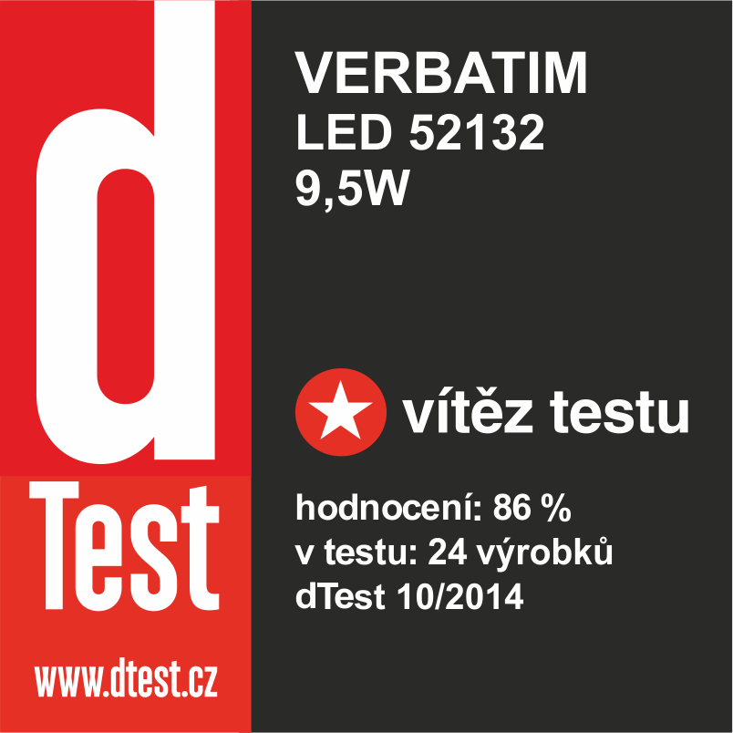 Výsledky nezávislého spotřebitelského testu světelných zdrojů dTest určily Verbatim jako vítěze v kategorii všesměrových zdrojů světla. Žárovka LED 52132 9,5 W zvítězila mezi 24 testovanými výrobky s hodnocením 86 %.