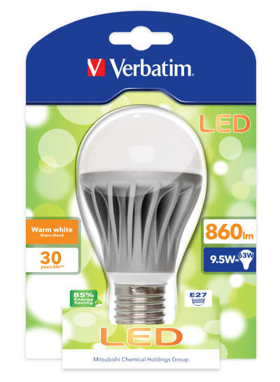 Vítězný model Verbatim LED 52132 9,5 W je žárovka typu Classic A se světelným tokem 860 lm (ekvivalent ke klasické 63 W žárovce) a je k dispozici s paticí E27. Díky barevné teplotě 3 000 K (teple bílá), světelné účinnosti 91 lm/W a životnosti 30 000 hodin (v případě každodenního používání po dobu 2,7 hodin to odpovídá přibližně 30 letům) slouží tyto nestmívatelné žárovky pro celkové osvětlení v domácnostech. Tato elegantně navržená žárovka je vybavena vestavěným teplotním řídicím systémem, který chrání elektroniku žárovky před přehřátím.
