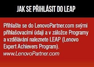 LEAP je věrnostní program pro obchodní partnery Lenovo navržený tak, aby jim pomohl rozvíjet jejich dovednosti a schopnosti nabízet řešení, služby a produkty určené pro datová centra (servery, datová úložiště, síťové prvky a další).