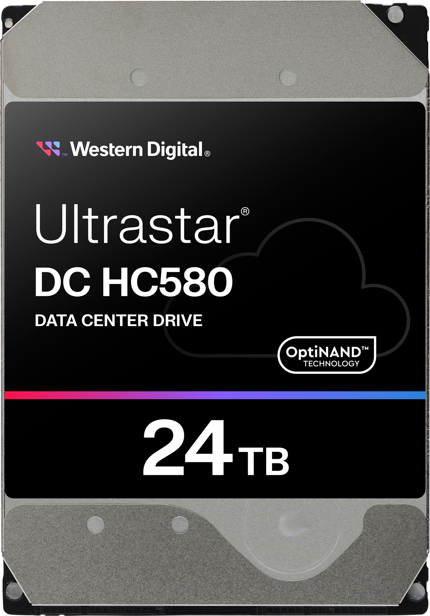 Zavádění inovací ve velkém měřítku pokračuje u 24TB pevného disk Ultrastar DC HC580 CMR s vylepšenou technologií OptiNAND. Disk představuje další skok v hustotě dat a umožňuje zákazníkům datových center maximalizovat úložiště na stejné ploše a v prostředí s omezenou spotřebou energie. Pro lepší hustotu úložiště může HC580 umožnit až 612 TB1 surového úložiště na jednu rackovou jednotku v řešení 4U se 102 diskovými pozicemi. Tyto disky jsou také energeticky účinnější, zajišťují o 12 % méně Wattů/TB2 ve srovnání s předchozí 22TB verzí.