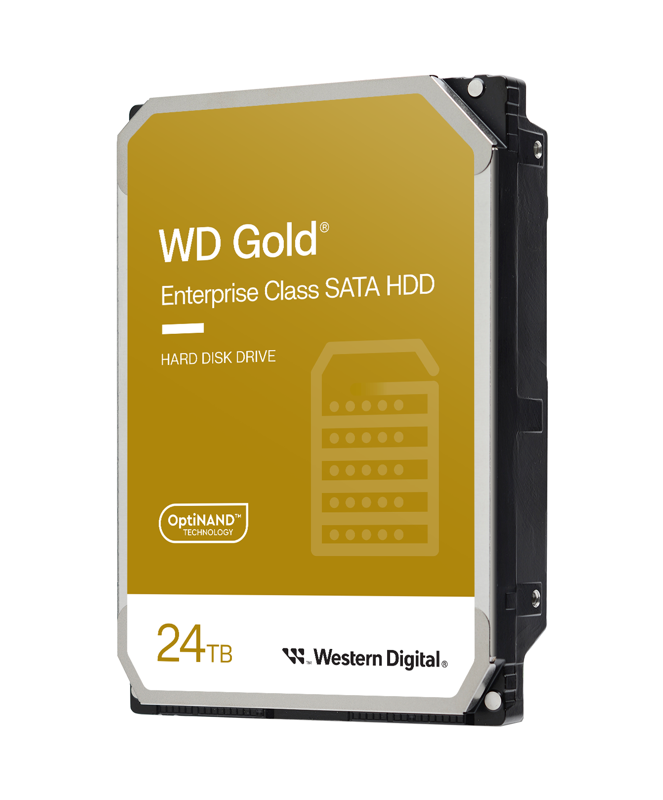 Společnost Western Digital nyní také dodává do prodejního kanálu svůj 24TB pevný disk WD Gold CMR SATA. Tyto disky jsou speciálně navrženy pro systémové integrátory a prodejce, kteří poskytují své služby podnikům a malým a středním firmám, kteří potřebují spolehlivější úložiště pro práci s velkými objemy dat a podnikovými úložišti, než jsou tradiční klientské HDD. Disk WD Gold 24 TB HDD využívá inovace technologické platformy Ultrastar, poskytuje až 2,5 milionu hodin MTBF (projektováno3), je vybaven technologií ochrany proti vibracím, je navržen tak, aby zvládl pracovní zátěž až 550 TB za rok4 a je na něj poskytována pětiletá omezená záruka.