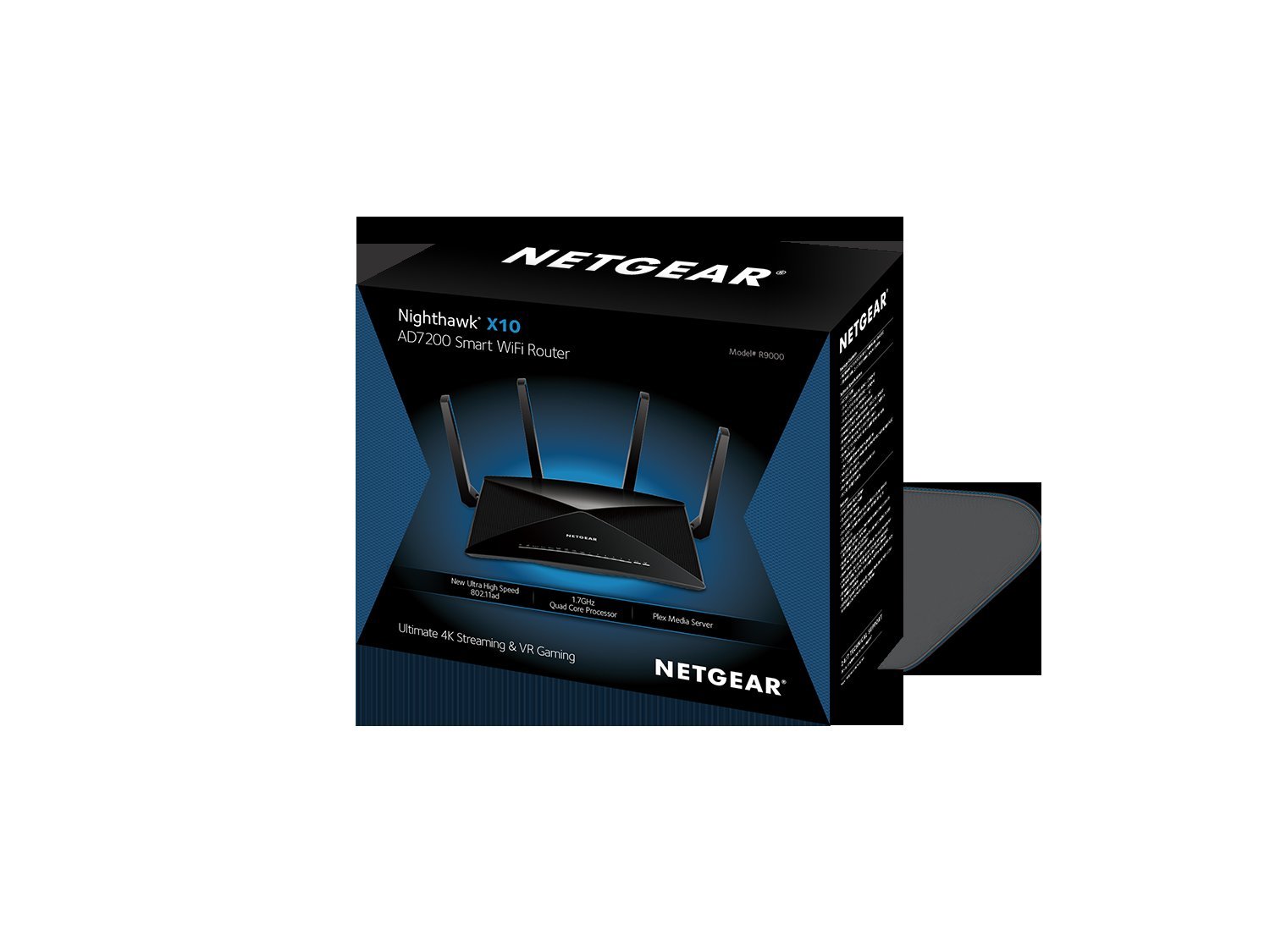 NETGEAR Nighthawk X10 je vybaven výkonným čtyřjádrovým 1,7GHz procesorem, který společně s nejnovějším Wi-Fi standardem 802.11ad a technologiemi Multi-User MIMO a Wave 2 Wi-Fi se čtyřmi nezávislými streamy ve třech vysílacích pásmech nabízí uživatelům Wi-Fi připojení s teoretickou rychlostí až 7,2 Gb/s* (800 Mb/s ve 2,4GHz pásmu 802.11ac + 1 733 Mb/s v 5GHz pásmu 802.11ac + 4 600 Mb/s v 60GHz pásmu 802.11ad). Tato oproti stávajícím routerům až třikrát vyšší rychlost zajišťuje dokonale plynulé streamování 4K multimédií, využívání virtuální reality či nepřetržité zálohování dat.