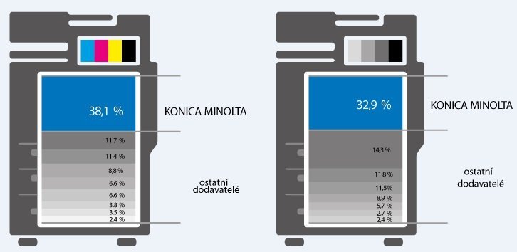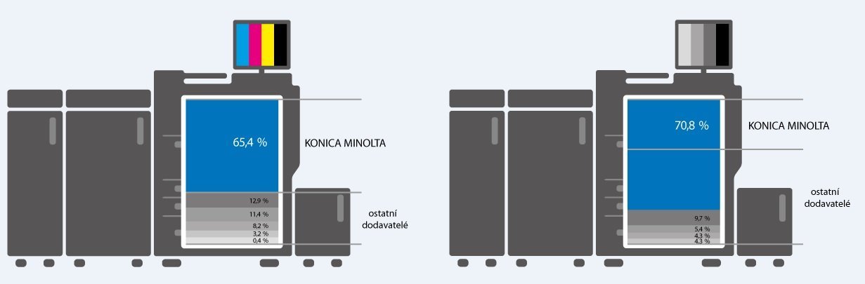 V tradiční oblasti tiskových řešení obhájila Konica Minolta v ČR pozici lídra mezi dodavateli barevných i černobílých zařízení formátu A3. V posledních dvanácti měsících společnost zvítězila v 98 případech z 227 podaných nabídek. Největší podíl drží také v segmentu produkčního tisku, kde pokrývá téměř dvě třetiny tuzemského trhu. „Mezi zákazníky obecně roste zájem o automatizaci procesů s cílem zrychlit a zefektivnit práci. Stejný trend pozorujeme i v oblasti produkčního tisku. Od loňska proto například nabízíme řešení využívající inkjetových tiskových hlav Konica Minolta, které umožňují potisk téměř jakéhokoli produktu přímo během výrobního procesu,“ doplnil P. Štěpán.