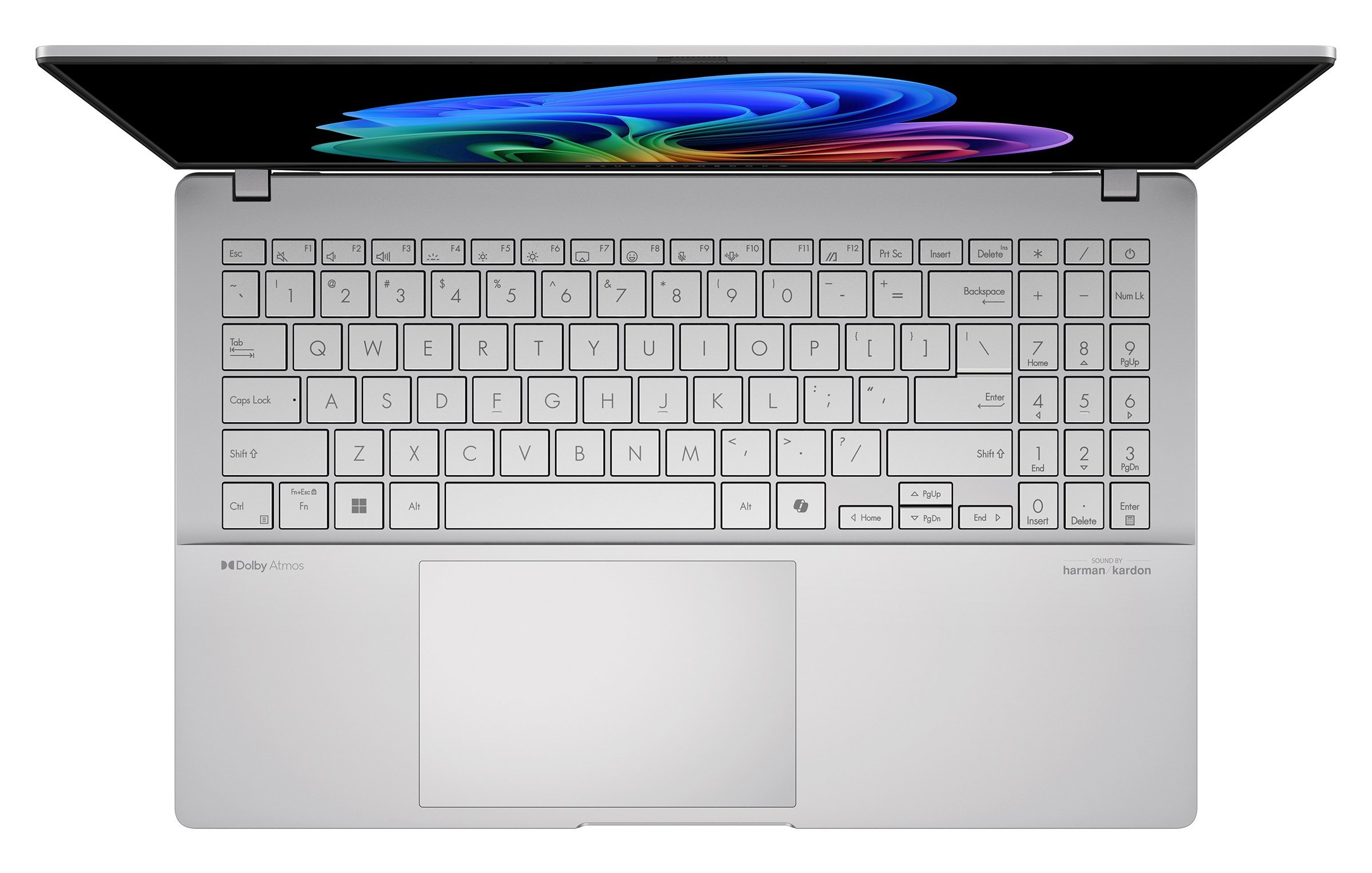 Prémiový styl podtrhuje jednozónová klávesnice s RGB podsvícením, kterou lze personalizovat prostřednictvím funkce Dynamic Lighting v operačním systému Windows 11. Uživatelé proto mohou vytvářet zajímavé efekty, které dokonale odpovídají jejich osobnosti a náladě. Speciální klávesa Copilot umožňuje rychlé využívání AI nástrojů systému Windows. Velký, inteligentní touchpad zajišťuje snadné ovládání na větší pracovní ploše. Prostřednictvím intuitivních gest lze ovládat různé úlohy, od úpravy zvuku po optimalizaci jasu obrazovky nebo přehrávání videa.