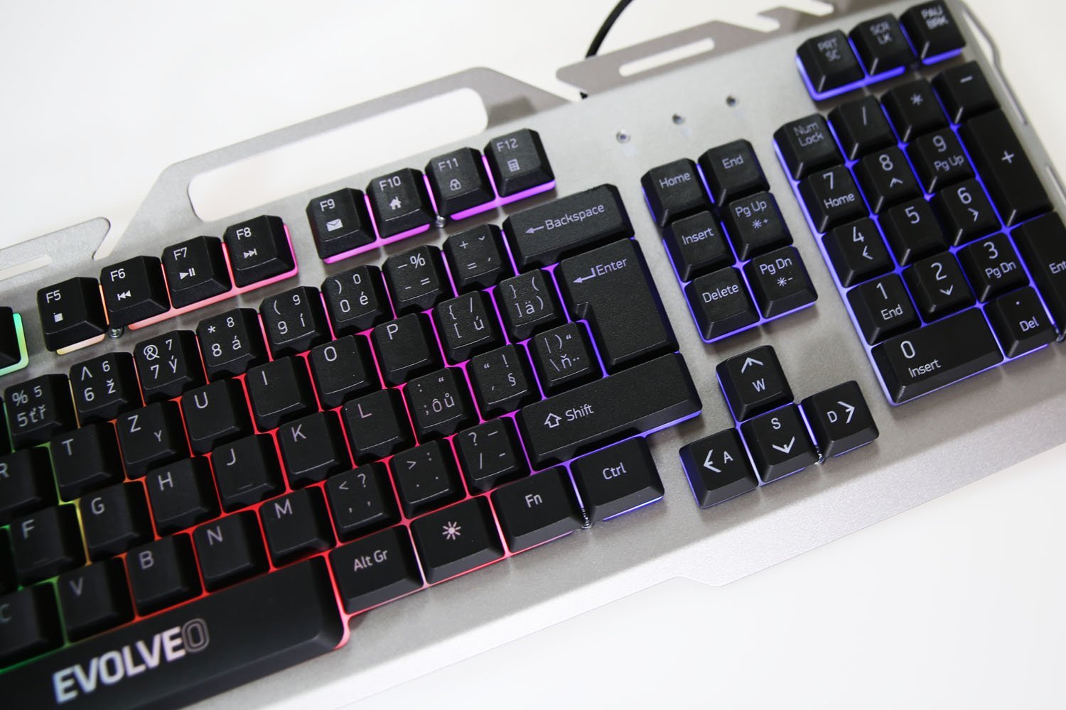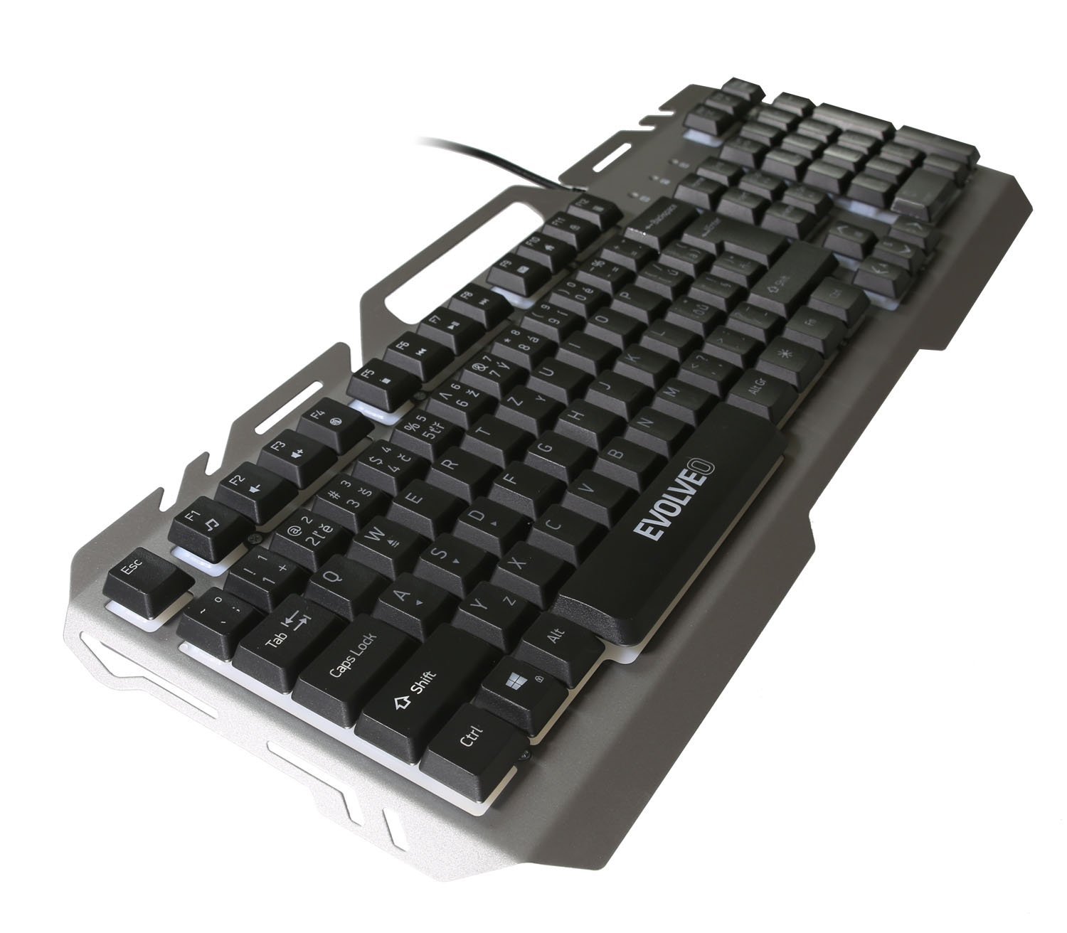 Novinka v nabídce klávesnic značky EVOLVEO se svým futuristickým designem a použitými materiály odlišuje již na první pohled od běžných klávesnic aktuálně nabízených na trhu. Klávesnice má kovové tělo, což zaručuje pevnost, odolnost i stabilitu. Atraktivní design je podpořen neonovým podsvětlením ve čtyřech volitelných režimech s možností regulace intenzity.