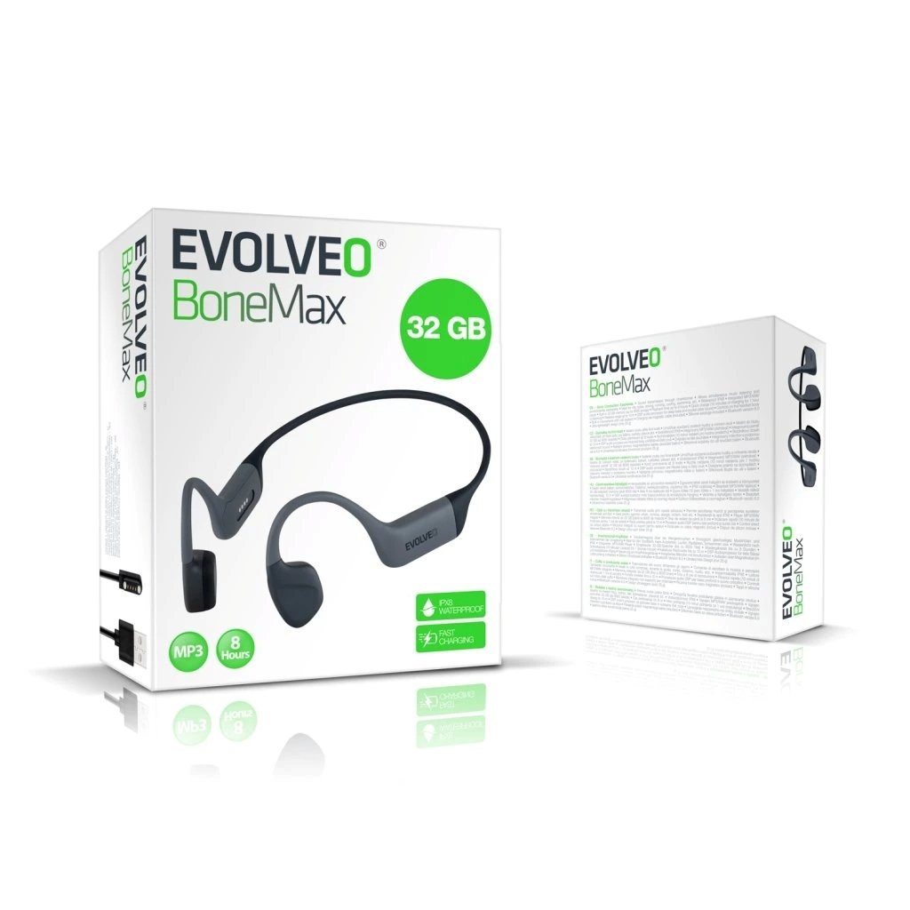Značka EVOLVEO uvedla na novou generaci bezdrátových sluchátek s přenosem zvuku přes lícní kosti. Díky pokročilé technologii přenosu zvuku přes lícní kosti sluchátka umožňují uživatelům vychutnat si čistý zvuk, aniž by ztratili kontakt se svým okolím. Model EVOLVEO BoneMax je vhodný například pro běžce, cyklisty, a díky certifikaci IPX8 dokonce i pro plavce.