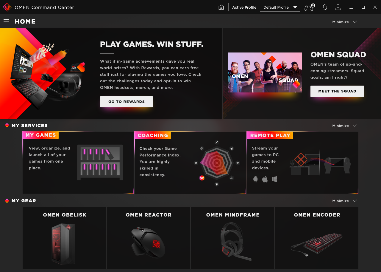 Počítače díky integraci OMEN Command Centra nabízejí ovládání osvětlení celkem až šesti zón včetně osvětlení předního loga, předního ventilátoru, vnitřního osvětlení, osvětlení chladiče CPU, paměťových modulů a grafické karty a pěti režimů osvětlení. Inteligentní přetaktování pak umožňuje dosáhnout nejlepšího výkonu využitím patentovaného algoritmu, který rozpozná nejvyšší optimální nastavení pro procesor a automaticky procesor přetaktuje za uživatele. Funkce pro ovládání ventilátoru nabízejí tichý, normální a turbo režim, což umožňuje mít chlazení pod větší kontrolou. Řešení se dodává s nejnovějšími funkcemi OMEN Command Centra jako Vzdálené přehrávání, Moje hry, Profily, Koučink a Odměny.