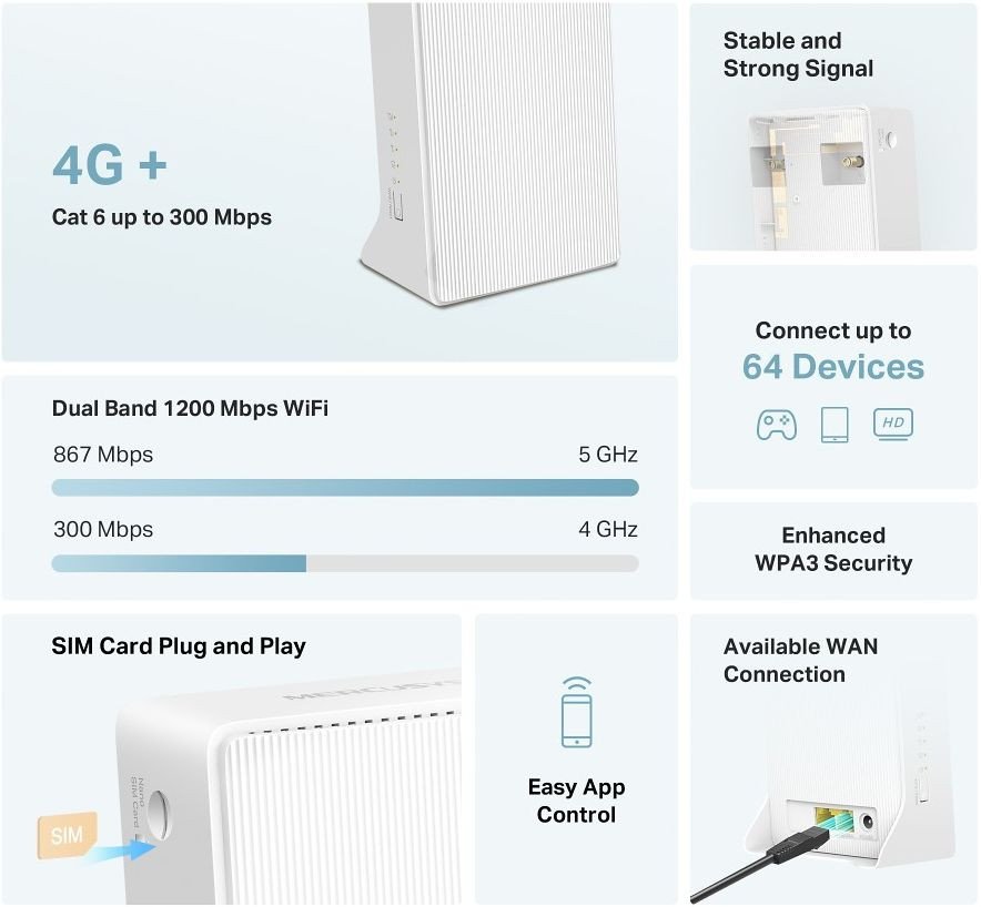 Díky kombinaci vysokého výkonu, snadného nastavení, pokročilých bezpečnostních funkcí a kompatibility se 4G+ LTE sítěmi představuje Mercusys MB230-4G ideální řešení pro všechny, kteří hledají spolehlivý způsob připojení k internetu. Díky kompatibilitě s mobilními sítěmi umožňuje router připojení k internetu i v oblastech, kde není dostupný kabelový internet. To z něj činí ideální řešení pro nasazení i na místech mimo města nebo v lokalitách s omezenými možnostmi připojení.