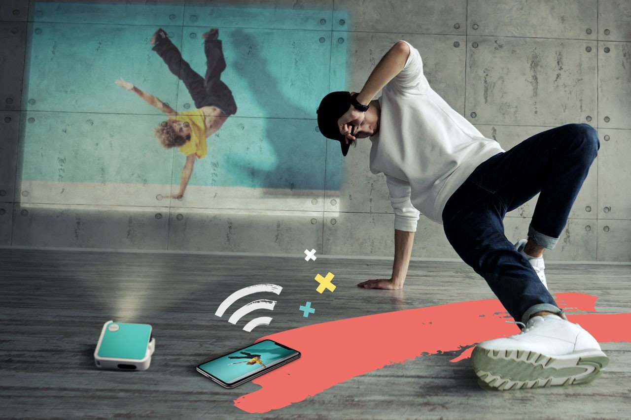 Projektor se dodává s vyměnitelnými vrchními kryty ve třech různých barvách, takže si jej uživatelé mohou přizpůsobit podle aktuální nálady. Flexibilní nastavení pozice promítání umožňuje integrovaný stojánek, který slouží i jako kryt čočky.