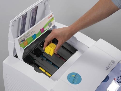 Barevný tisk je nyní dostupnější pro podniky všech velikostí díky barevné tiskárně s tuhým inkoustem. Bezkazetový tuhý inkoust vytváří barevné výstupy ve vysoké kvalitě a produkuje o 90 procent méně odpadu než srovnatelné barevné laserové tiskárny.