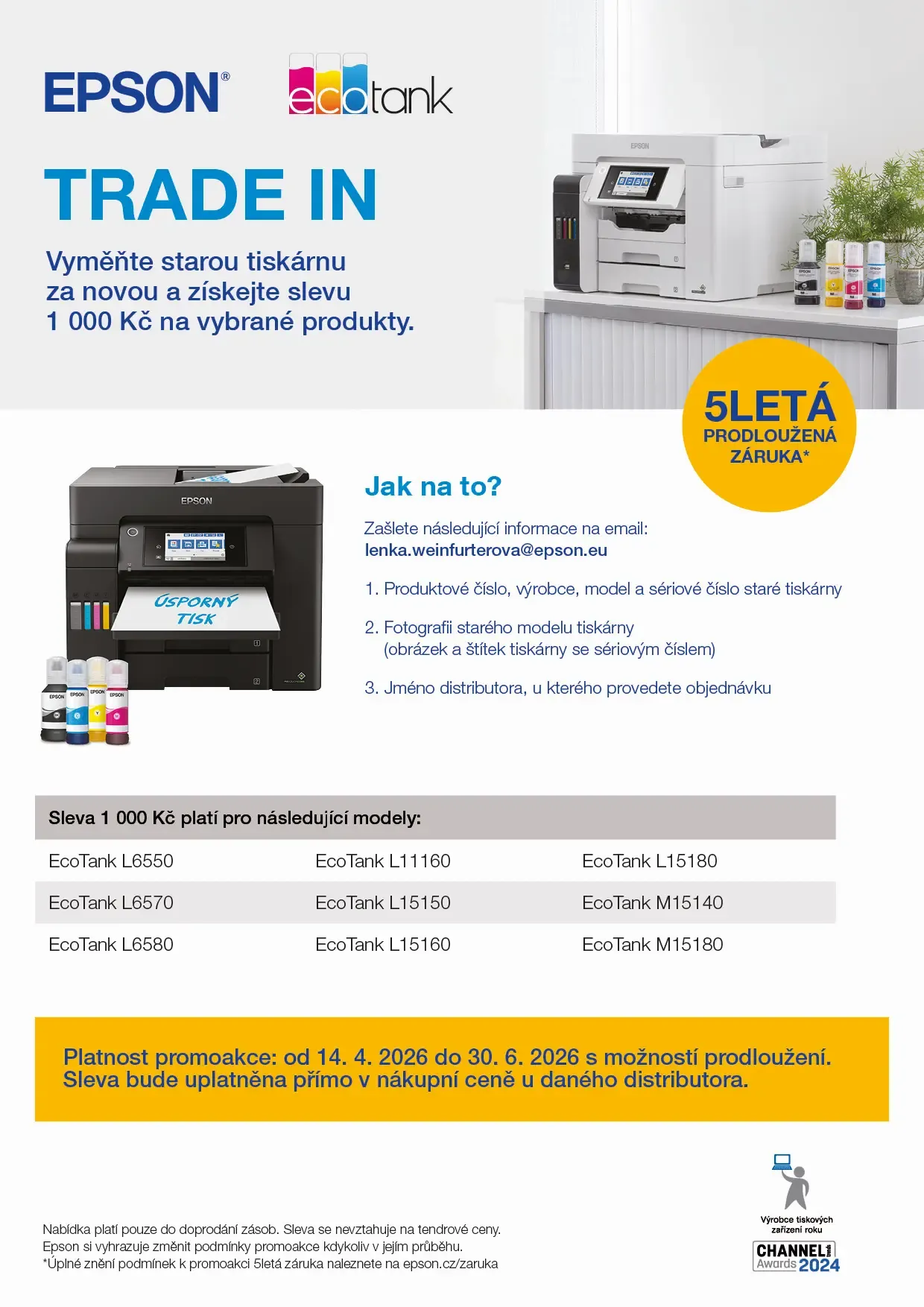 | Anotace | Vyměňte starou tiskárnu za novou a získejte slevu 1 000 Kč na vybrané produkty! |