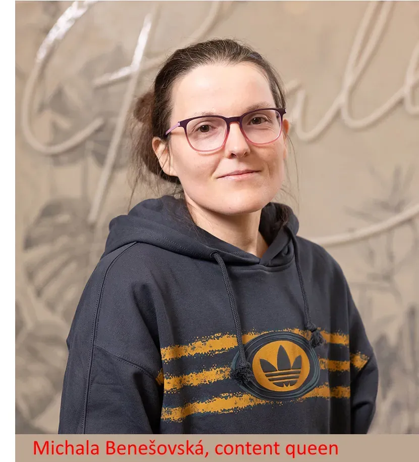 - Míša Benešovská přes deset vytváří obsah v DCD Publishingu. Novinářka, redaktorka, člověk oplývající znepokojivým černým humorem a obrovským přesahem do IT technologií. Věří, že obsah má lidem přinést hodnotné informace, experimentuje s různými formami obsahu a AI nástroji.
