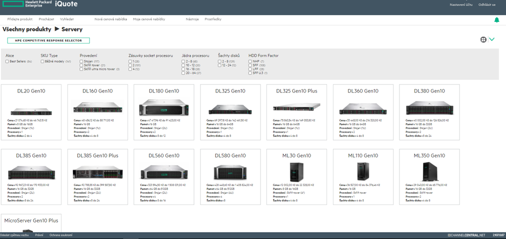 Jde zejména o produkty pro SMB zákazníky. Naleznete zde de facto kompletní serverové portfolio pro SMB zákazníky od malých tower serverů, přes nejprodávanější rackový server DL380 a samozřejmě disková úložiště. Reseller může vybírat i z předem vybraných řešení pro různé typy zákaznických využití, jako jsou nástroje pro vzdálenou práci z domova, VDI, virtualizovaná prostředí, sdílená úložiště, souborové služby atd. Vidíte zde i tzv. TopSellery – nejprodávanější modely, což může v mnoha případech sloužit jako vodítko.