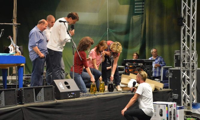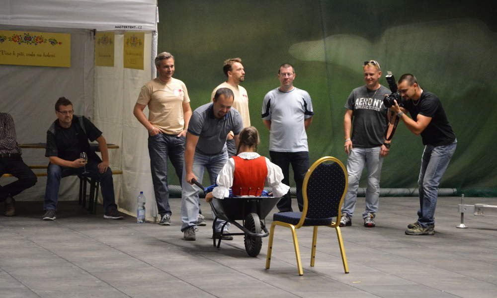 Večerní část setkání slibovala velkou podívanou v moravském lidovém duchu. Hned po večeři a krátkém zahájení nastoupila na pódium kapela Medicimbal se svou tradiční lidovou cimbálovou muzikou. Vystoupení kapely bylo proloženo řadou scének, menších vystoupení a soutěží, takže o zábavu skutečně nebyla nouze. Jmenovat můžeme například soutěže, jako byla časovka v převážení děvčat na kolečku, natahování vína do koštýře nebo poznávání vybraných druhů alkoholu „naslepo“. Soutěžilo se samozřejmě o zajímavé věcné ceny.