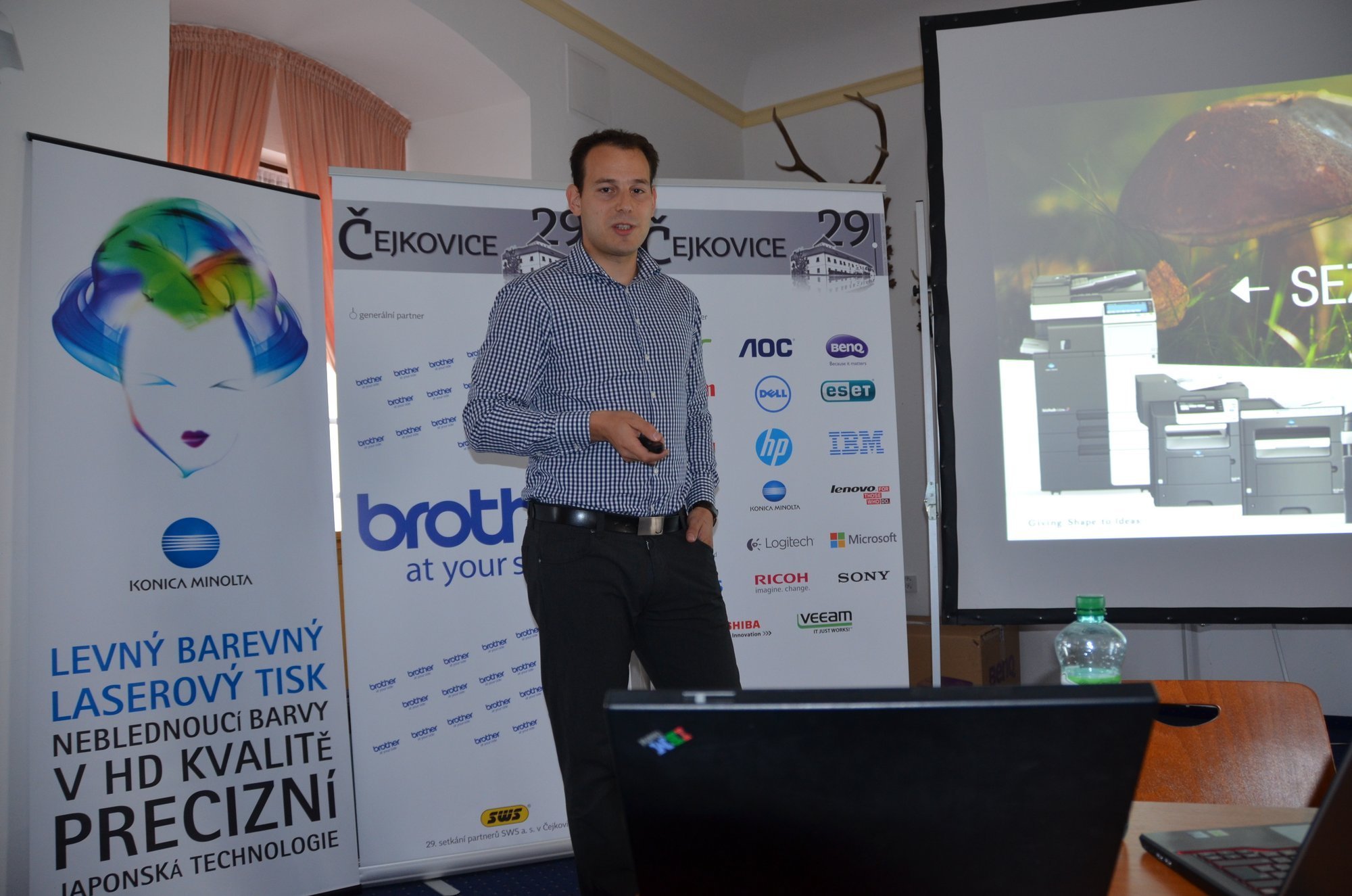 Program zahájil Stanislav Skalička, obchodní ředitel SWS: „Všechny vás vítám na téměř jubilejním setkání partnerů SWS v Čejkovicích. Když jsme pořádali první, bylo našim plánem, aby akci navštívilo alespoň sto prodejců. Na tomto setkání svoji účast potvrdilo 750 lidí, za což děkujeme všem, kteří s námi spolupracují. Rosteme však i jinde nejen v obratu a to zhruba o 30 %, ale také v počtu námi distribuovaných produktech. Zároveň mám radost, že partnerem tohoto setkání se stala nejvýznamnější tiskárenská značka v našem portfoliu. Brother u nás přitom stále roste a to i přes to, že trh, ve kterém působí je složitý. Daří se nám však i jinde, především v noteboocích, telefonech a v dalších přenosných zařízeních.“ Poté Stanislav Skalička předal slovo váženému rostoucímu tiskařskému partnerovi a to sice Brotheru a konkrétně prvnímu přednášejícími, Vítkovi Vyhnálkovi. Ten zahájil tradiční kolo přednášek o produktech a službách.