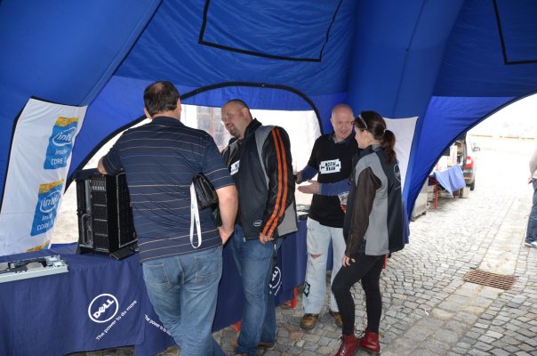 Během celého dne bylo plno také u venkovní „expozice“ Dellu, kde Stanislav Hájek všem přítomným vlastnoručně připravoval pochutiny z klobás. Ty přivezl osobně brzy ráno přímo od řezníka, aby byly opravdu čerstvé a moc mu na tom záleželo. A že byly nejen čerstvé, ale opravdu vynikající, což můžeme potvrdit! Aby je bylo čím spláchnout, nechybělo pivo a také kofola. Následně bylo možné od produktových manažerů Dell získat nové informace o inovovaném nejen produktovém portfoliu, odnést si vestu a také případně zasoutěžit i o další ceny jako tablet a to v soutěži, kdo je lepším „hudebníkem“.