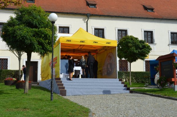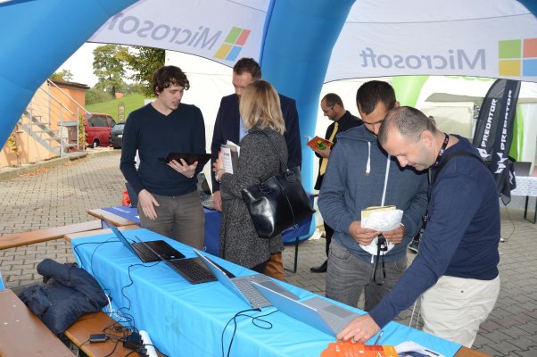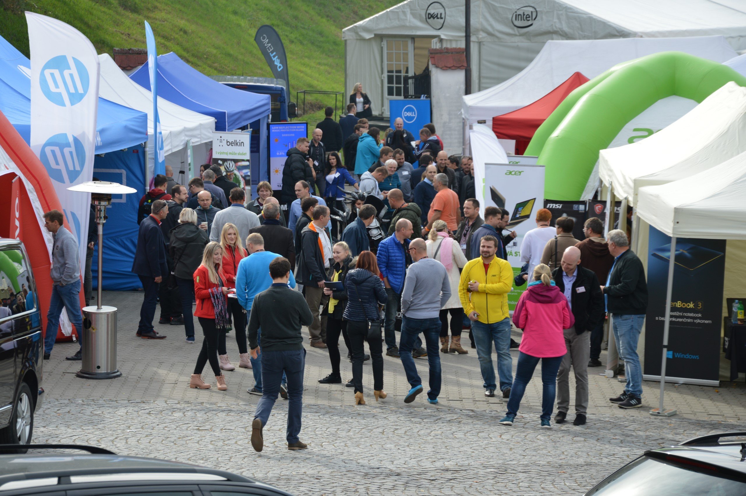 Již od samého rána, kdy začali přicházet první návštěvníci, zalévaly čejkovický zámek a jeho okolí překvapivě teplé sluneční paprsky. Na nádvoří tou dobou již stály připravené stany a stánky společností, jako AOC, Asus, Fujitsu, HP, Lenovo, Microsoft nebo Philips. Kromě nejnovějších produktů a možnosti si osobně pohovořit se zástupci jednotlivých značek zde během celého dne proběhla řada soutěží (zmínit můžeme například možnost získat víno od společnosti MMD) a k dispozici byly nejrůznější formy občerstvení (např. pivo a klobása u Fujitsu nebo káva a zákusek u HP).
