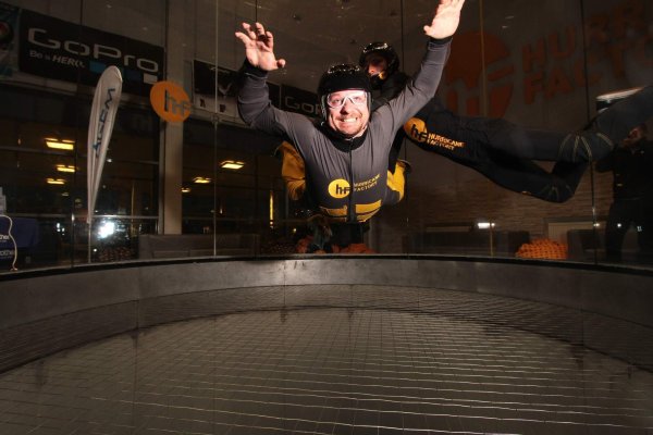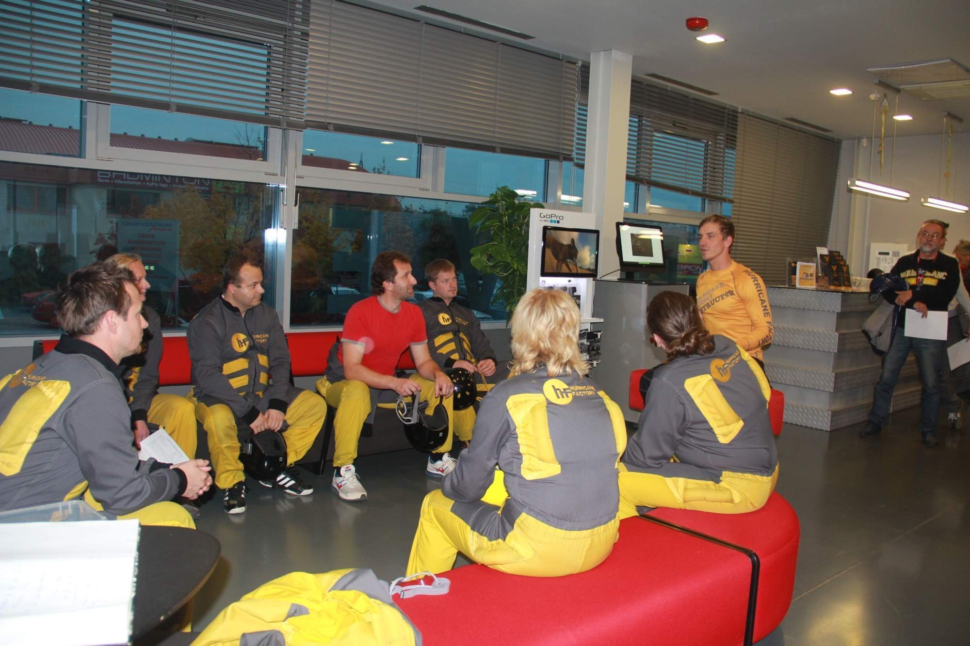 Bezprostředně po skončení poslední přednášky proběhla rychlá instruktáž, po které již prvním odvážlivcům nic nebránilo v cestě k jedinečným zážitkům získaným při létání ve vzdušném tunelu Hurricane Factory. A jak se mnozí mohli přesvědčit, zvládnout byť jen základy není žádná legrace, a při nejmenším ze začátku se může každý nepovedený manévr vymstít nepříjemným pádem. Každý si však zalétal dosyta a partneři volbu netradičního doprovodného programu nakonec vděčně kvitovali.