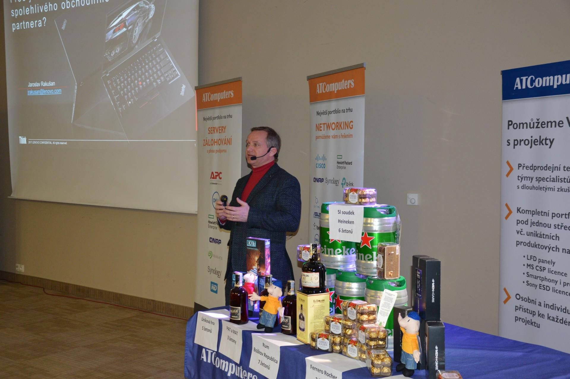Jaroslav Rakušan ze společnosti Lenovo se v úvodu svého vystoupení zamyslel nad tím, proč je důležité mít spolehlivého obchodního partnera, co zákazník požaduje a očekává, kdo s tím partnerovi pomůže, jak se dostat k nejlepší nabídce a jak a čím zákazníka zaujmout, a jaká jsou případně řešení, když se něco pokazí? Následně vysvětlil, jak při řešení předchozích otázek pomohou právě produkty značky Lenovo. Následoval přehled komerčních zařízení Lenovo napříč jednotlivými produktovými kategoriemi. Nechybělo ani představení důležitých obchodních nástrojů.