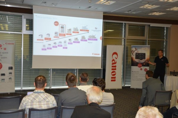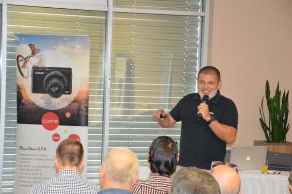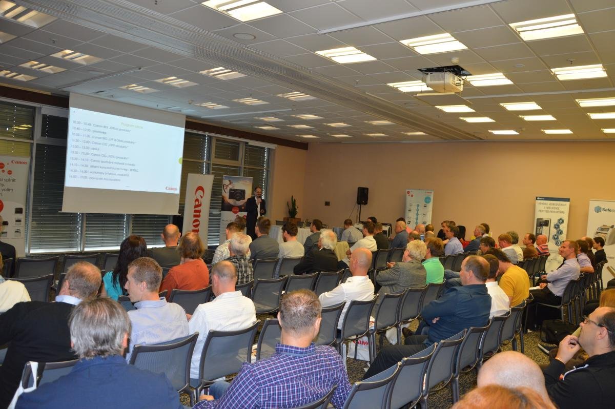Vodním radovánkám předcházel program samotného setkání: Na úvod vystoupil a partnery uvítal Miloš Karlík, produktový manažer ve společnosti BHC Int. a pro první přednášku předal slovo odborníkům z Canonu, kteří představili tzv. „Office Produkty.“ Hned po nich pak partnerům představili i kategorii LFP a DIMS. Během přednášek došlo k slavnostnímu odhalení nového stroje iR Advance C3325i (tiskne v barvě). Následovaly foto produkty Canonu, včetně nejnovějších modelů s nejrůznějšími vychytávkami. Při prezentacích nemohl chybět ani blok o spotřebním materiálu, který tvoří nedílnou součást produktů z rodiny Canon.