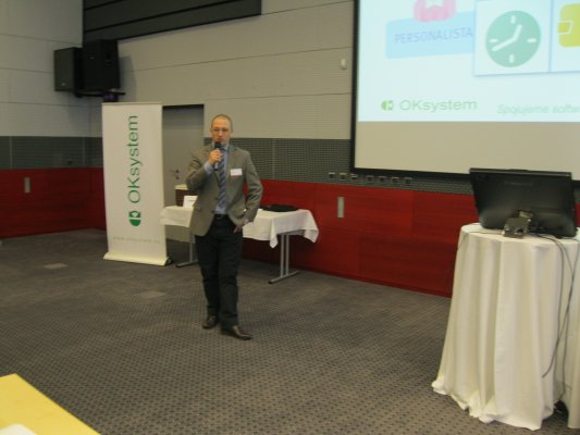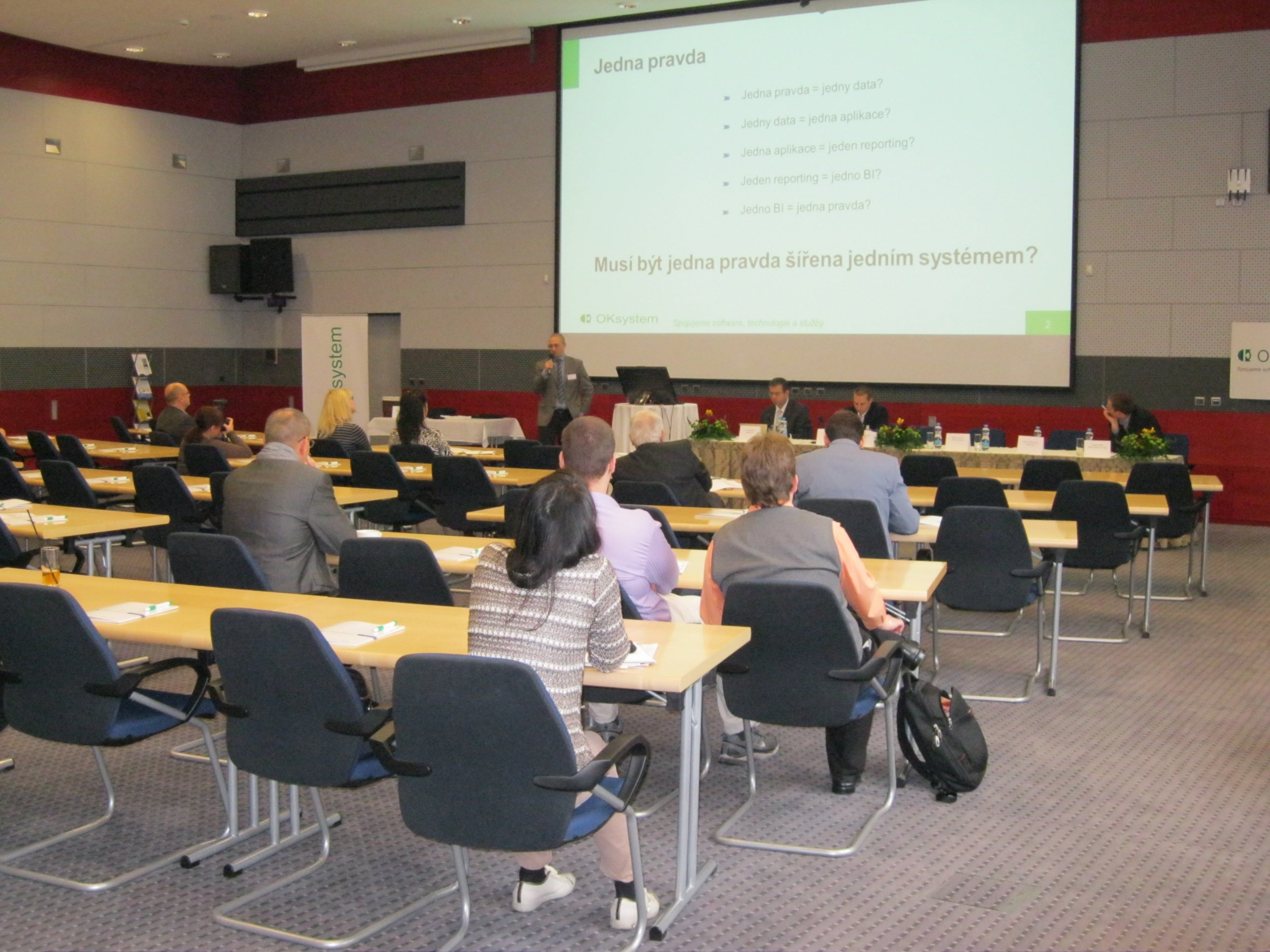 Konferenci zahájil Martin Procházka, ředitel společnosti OKsystem: „Stejně jako dříve jsme se snažili i letos vybrat aktuální témata v oblasti business inteligence a proto jsme zvolili analýzu velkých dat a nestrukturovaných dat. Dalším tématem, které v současné době nabývá na důležitosti, a proto jsme jej nemohli opomenout, jsou i tzv. otevřená data, celosvětově zajímavé téma, které se dostalo i do strategie vlády ČR. Díky tomu se zde vytváří určitý prostor pro IT firmy, které by mohly na otevřená data navazovat svoje aplikace. Určitě bych chtěl také poděkovat společnosti Oracle, která je partnerem letošního ročníku konference. Kromě Oraclu zde máme i další významné společnosti, které se v oblasti business inteligence pohybují, a to Microsoft a IBM.“