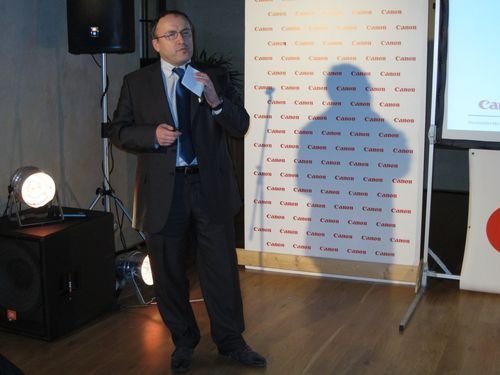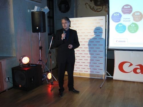 Miloš Bejblík, marketingový manažer Canon vysvětlil marketingovou strategii, která se bude opírat o nový pan-evropský partnerský program, Daniel Míka představil strategii produktové řady kancelářské techniky a zdůraznil prodej komplexních řešení včetně služby eMaintenance a nárůst počtu registrovaných strojů spravovaných partnery.