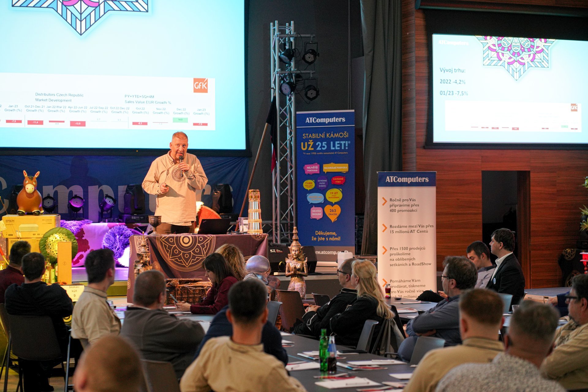 K obědu byly pro účastníky nachystány tradiční mongolské knedlíčky, které se v Mongolsku servírují při zvláštních příležitostech, a pak už následovala prezentace ATC novinek v kongresovém sále. Za obchod prezentovali Petr Vaněk, Andrea Šimonová či Petr Suk, kteří shrnuli vývoj situace na českém i slovenském IT trhu za poslední dobu. Mluvili také o novinkách na ATC webu v oblasti XaaS nabídky – že si reselleři mohou jednoduše vypočítat leasing na různá zařízení, nabídka se ladí vždy zákazníkovi na míru. Informovali také o aktuálním dotazníku na www.atcomp.cz, kde ATC zajímá spokojenost resellerů s komunikací obchodníků, s dodávkami, zda by chtěli něčím doplnit nabízené portfolio apod. Nezapomněli zmínit také novinky na ATC webu a nové všeobecné obchodní podmínky a rámcovou smlouvu pro rok 2023.