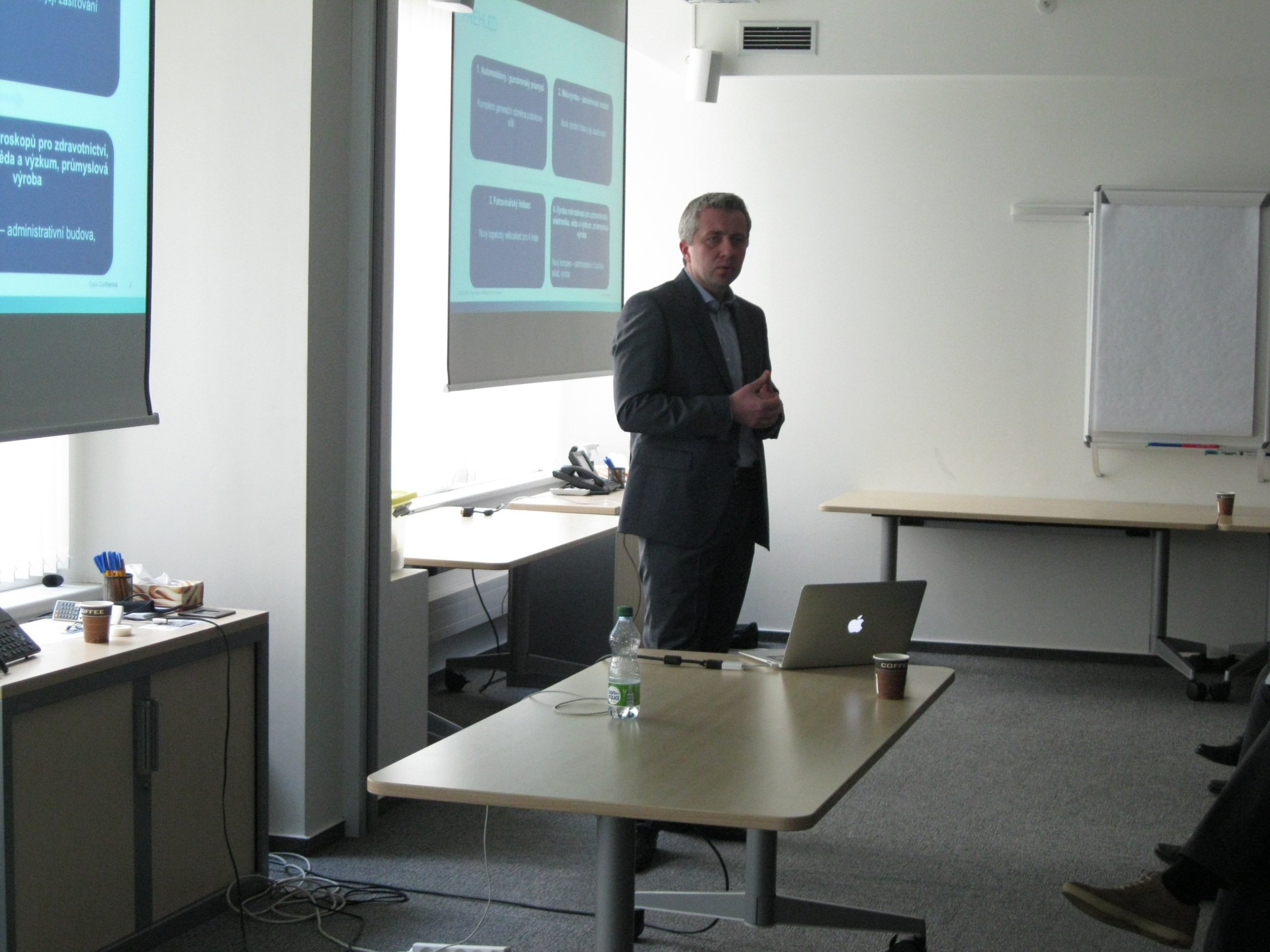 Jan Šindler vystoupil s příklady implementace síťových řešení společnosti Cisco u několika klientů (ať již u zákazníka z oblasti automobilní/gumárenské výroby, z malovýroby, potravinářství nebo výroby zdravotnických pomůcek).