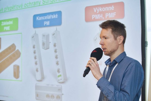 Poslední prezentace patřila Lukáši Votrubcovi z APC by Schneider Electric, který se věnoval novinkám v ochraně napájení pomocí UPS. Votrubec představil přehled jednofázových produktů Back-UPS BE/BX/Pro, Smart-UPS SC/SMC/SMT/SMX/SURT/SRT a Symmetra LX, nové přepěťové ochrany SurgeArrest a rozdíly mezi jednotlivými řadami (PME/PM/PMH, PMF). Detailněji se pak věnoval jednotlivým domácím a kancelářským UPS a možnostem připojení do cloudu u Smart-UPS s funkcí APC SmartConnect. Rovněž uvedl, že při registraci a připojení UPS před SmartConnect dostane zákazník rok záruky pro baterie zdarma. Následně došlo na bližší představení nové generace Smart-UPS On-Line a možností rozšířené záruky.