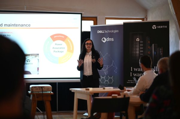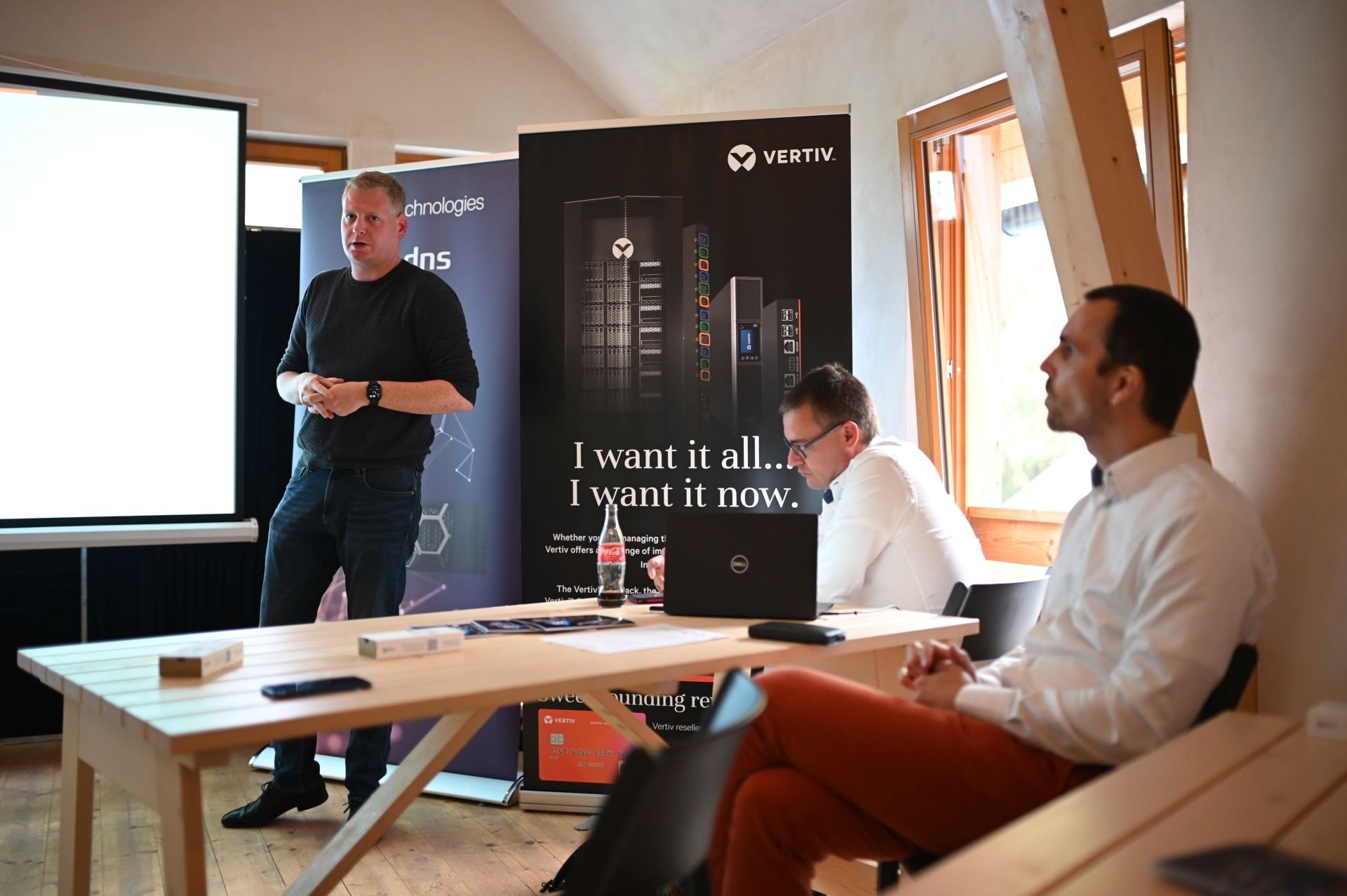 V neposlední řadě se účastníci prostřednictvím Dalibora Eliáše (DNS) a Ivety Pavlíkové (Vertiv) seznámili s produkty a řešeními do datových center od firmy Vertiv (Emerson), která je globálním partnerem Dellu.
