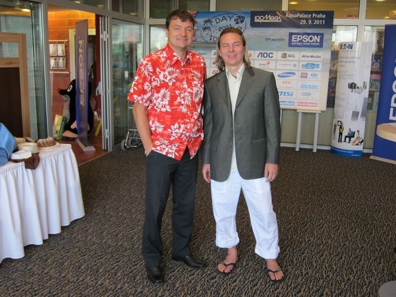 Setkání krátce zahájili ředitel Martin Zavřel a obchodní ředitel David Petrovič. Oba se stali už ráno jakýmsi barometrem přibližující se zábavy, o kterou přece ten den šlo v aquaparku především, kromě samozřejmých a povinných prezentací řady výrobců i samotné 100Mega Distribution.