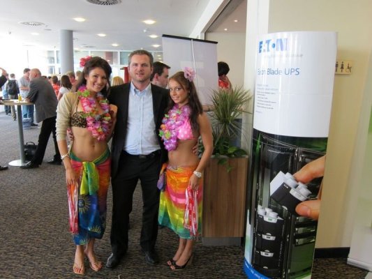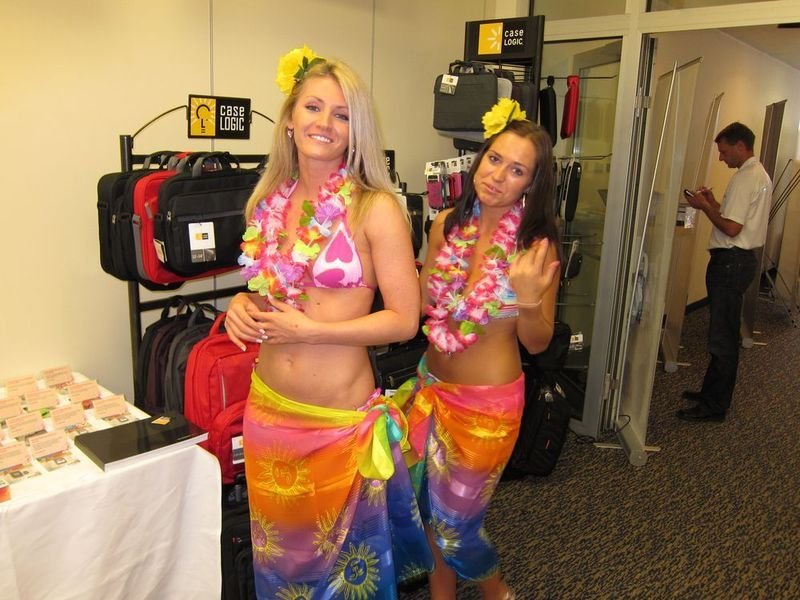 Následovaly přednášky partnerů-výrobců ve dvou sálech; vystavovali v předsálí. Partnery téměř nebylo možno vyfotografovat jinak, než s krásnými hosteskami, případně v jejich objetí. Samotné hostesky 100Mega se ostatně stávají s postupem času jejím druhým logem; neobdivovaly ani tak IT, jako spíše módní doplňky pro IT – že by takový malý návod pro resellery?