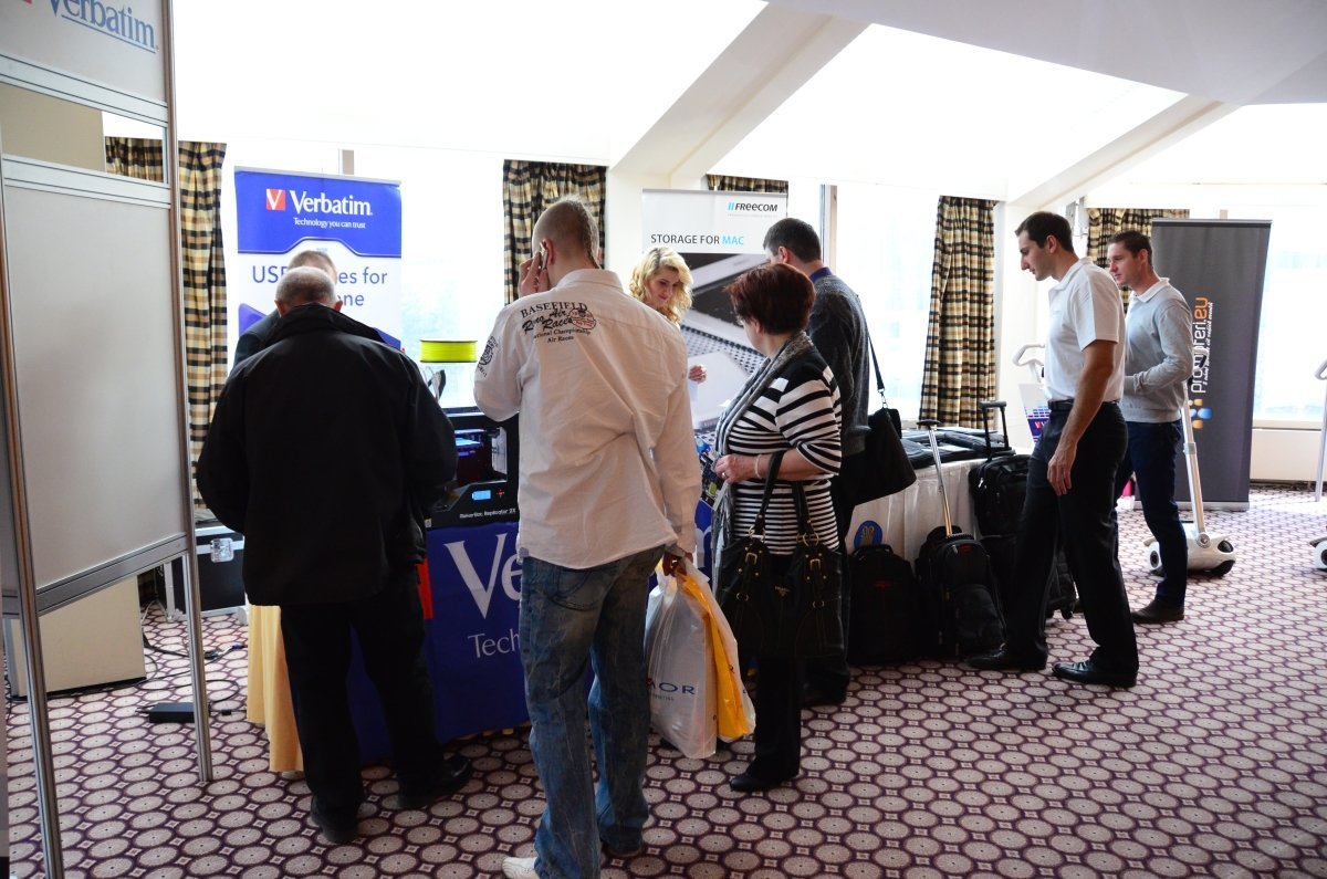 Některé stánky skutečně „táhly“ – zmínit můžeme např. výstavku společnosti Verbatim (s 3D tiskárnou a elektrickými vozítky), Konica Minolta (s dálkově ovládaným automobilem a závody elektronických švábů) nebo Epson s interaktivní tabulí.