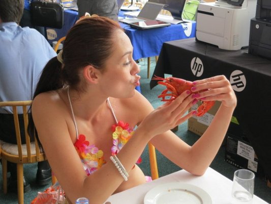 Dobrovolnice z publika, kovaná resellerka, které z každého oka koukalo nejméně pět pořádně nabouchaných desktop PC a notebooků, se na to však nemohla dívat a nakonec ještě poněkud nezkušeným mladičkým hosteskám ukázala, jak se mokré tričko dělá pořádně. Večer pokračoval volnou zábavou, jejíž průběh umocňovala barmanská show, včetně nabídky míchaných nápojů. Zástupce Reseller Magazinu se však nechal až příliš rozptýlit a vyvést vším tím havajským stylem natolik z míry, že nakonec o míchaný nápoj přišel. Zato se mu toho podařilo nafotit maximum.